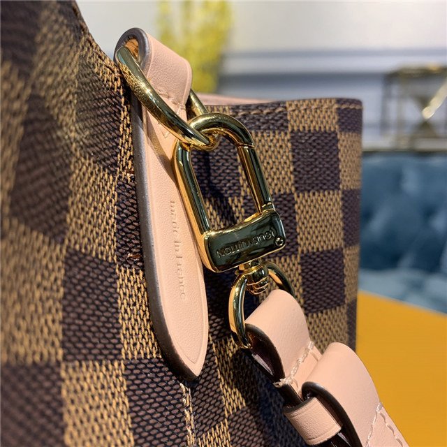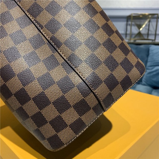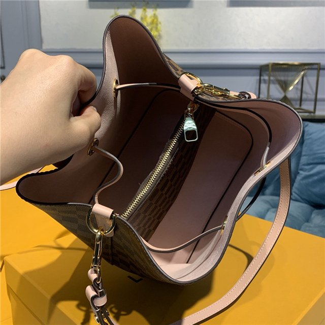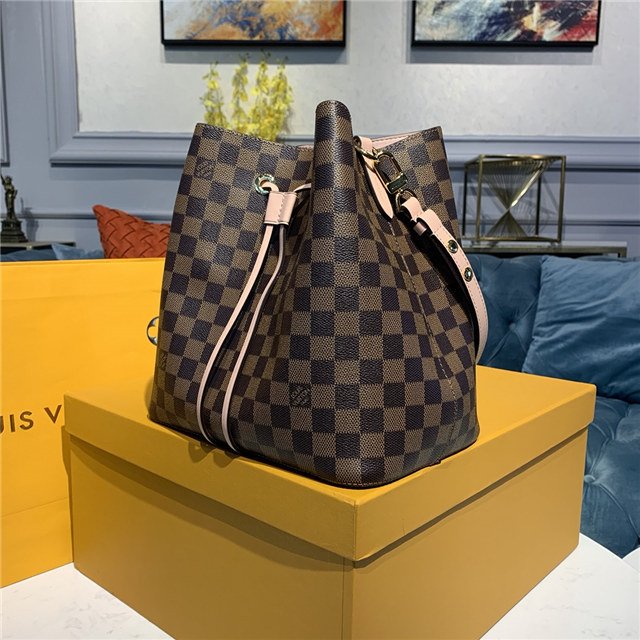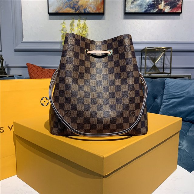 The NéoNoé bucket bag is fashioned from Damier Ebène canvas, accented with colorful details such as its drawstring and matching bonded lining. This lightweight and body-friendly bag can be worn cross-body or over the shoulder with a long or short drop, thanks to its adjustable strap. The inside zipped pocket keeps valuables safe.