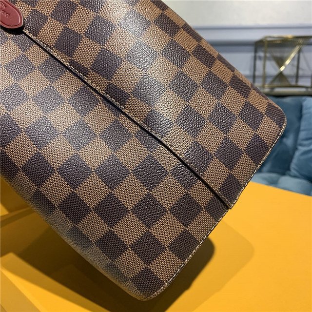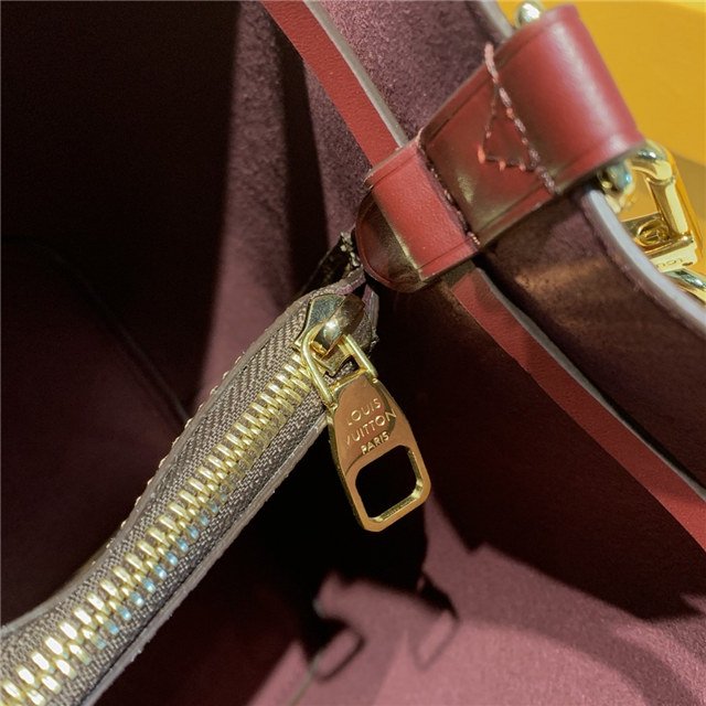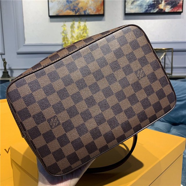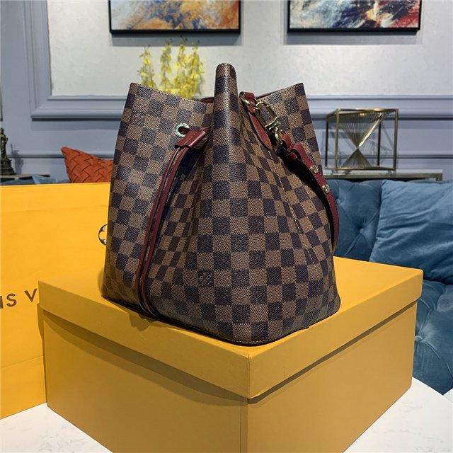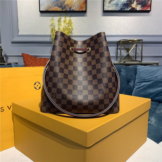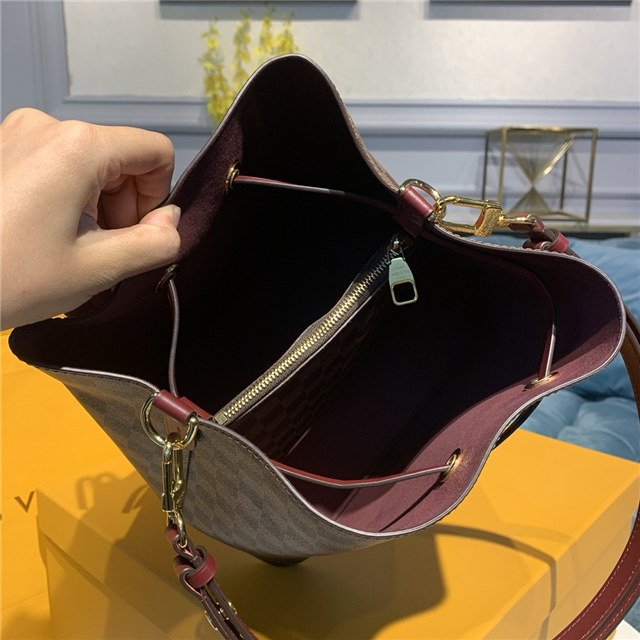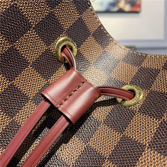 The NéoNoé bucket bag is fashioned from Damier Ebène canvas, accented with colorful details such as its drawstring and matching bonded lining. This lightweight and body-friendly bag can be worn cross-body or over the shoulder with a long or short drop, thanks to its adjustable strap. The inside zipped pocket keeps valuables safe.