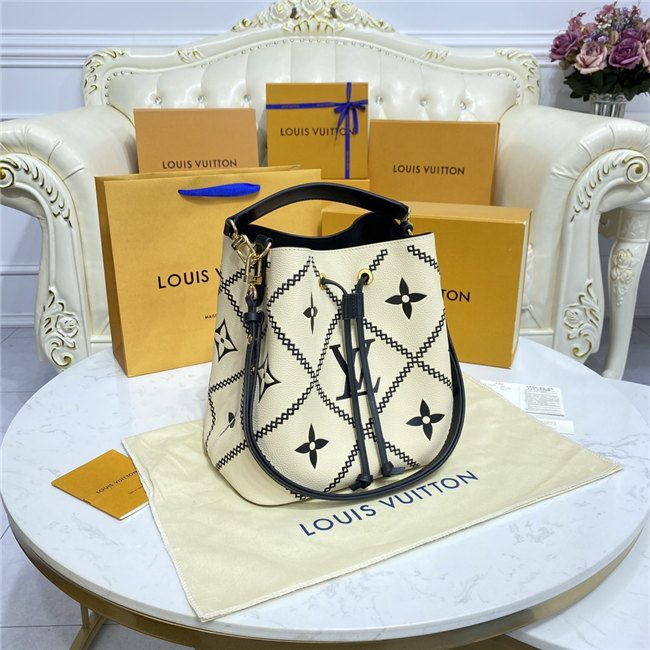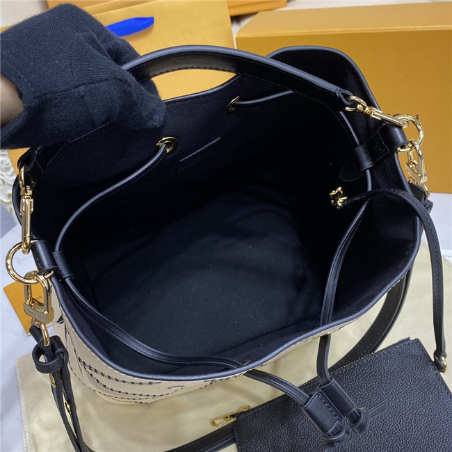 The NéoNoé bucket bag in Monogram Empreinte looks more fashionable than ever, adorned with immaculately crafted contrast stitching. The supple leather is printed, embossed, then embroidered with a distinctive pattern that recalls the quilted lining of the Maison’s trunks. The refined embellishment makes this versatile NéoNoé a statement piece for Spring 2022 and seasons to come.