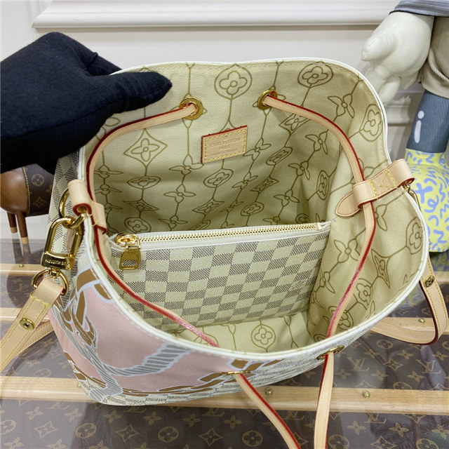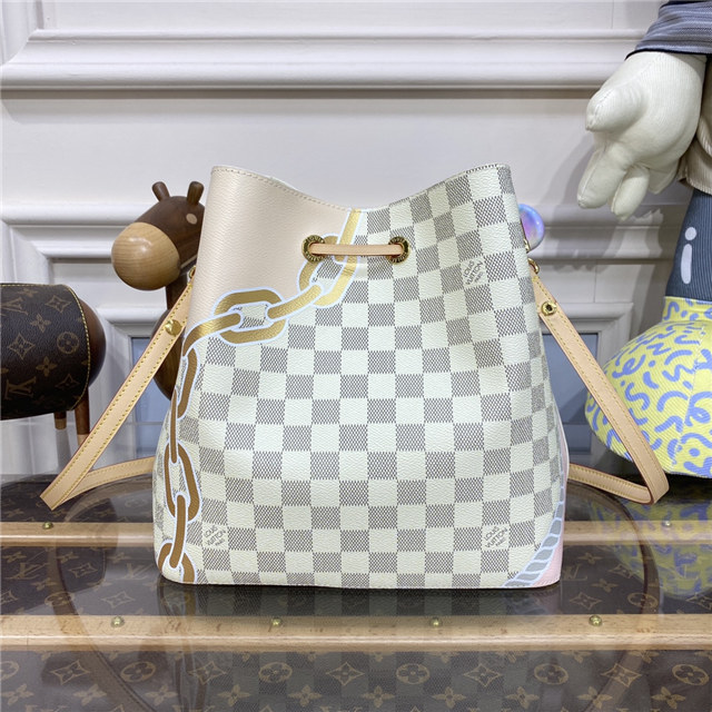 The body-friendly NéoNoé MM bucket bag takes on a summery feel in Damier Azur canvas, livened up with a bold yet feminine nautical print of ropes and chains. The bag’s strap can be adjusted for long- and short-shoulder carry as well as cross-body wear. The inside zipped pocket keeps belongings secure.