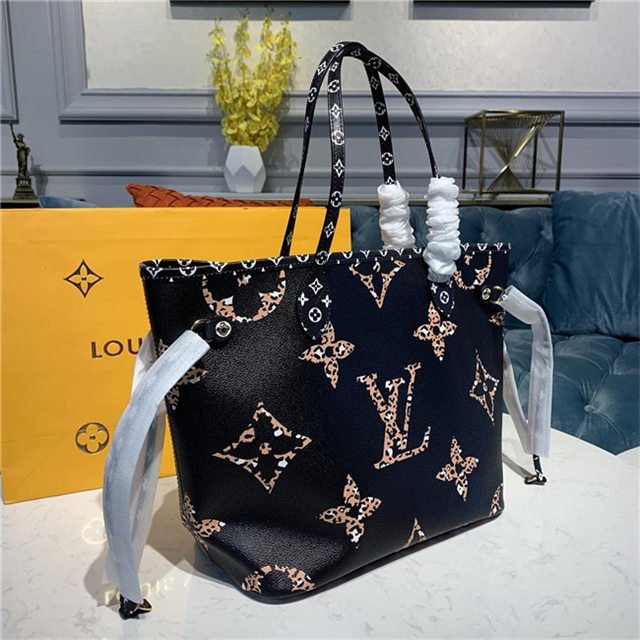The Neverfull MM tote bag is fashioned from canvas with a print that combines different-sized Monogram patterns with animal prints. The striking result is sure to satisfy both House purists and those seeking a more adventurous alternative. Spacious, the Neverfull has slim handles that can be worn over the shoulder or on the arm.