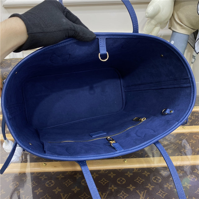 The Neverfull MM tote takes on a tastefully feminine feel in Monogram Empreinte leather, with a gradient treatment of oversized LVs and Monogram Flowers. This functional carryall can be cinched closed with its side laces or left open for a more casual look. Inside, there’s a removable zipped pouch in latching Monogram Empreinte leather will fit valuables.