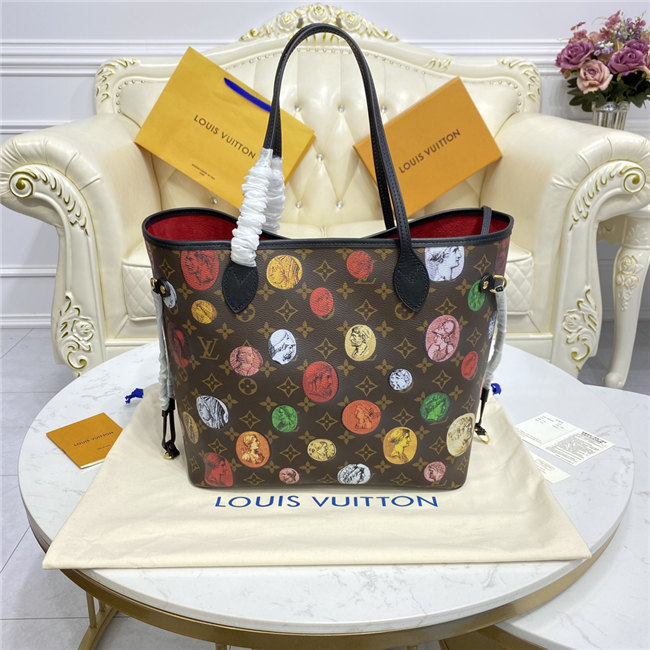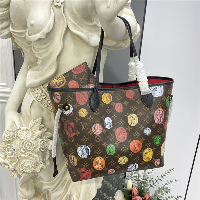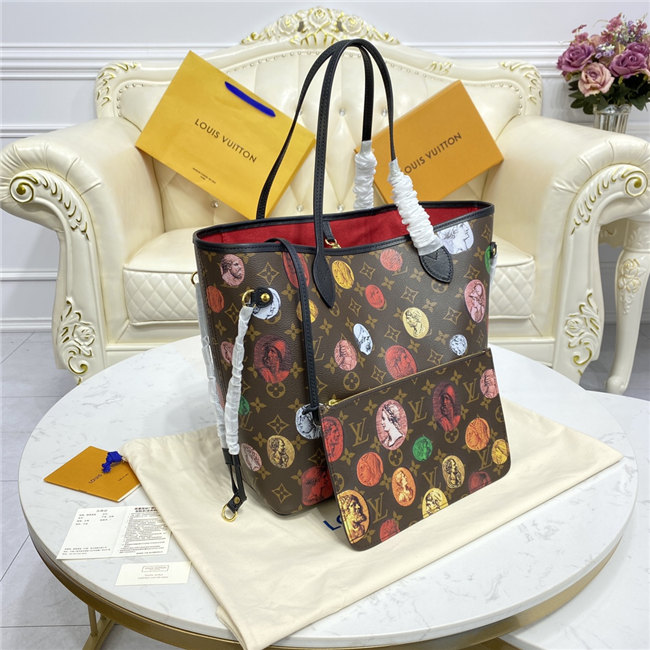 Part of the LVxFornasetti capsule collection created for the Fall-Winter 2021 season, this fashionable edition of the Neverfull MM tote is arrayed in an exclusive print that unites iconic Monogram canvas with an overlay of colorful cameos. Inspired by antique coins, the Greco-Roman motifs are finely illustrated in the signature style of the Fornasetti design atelier.