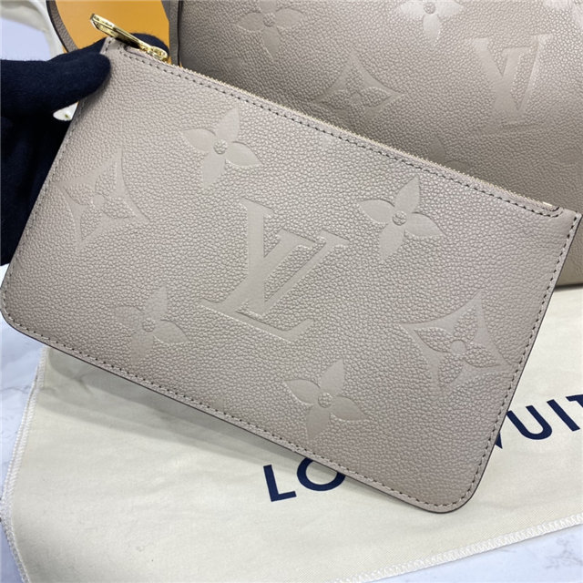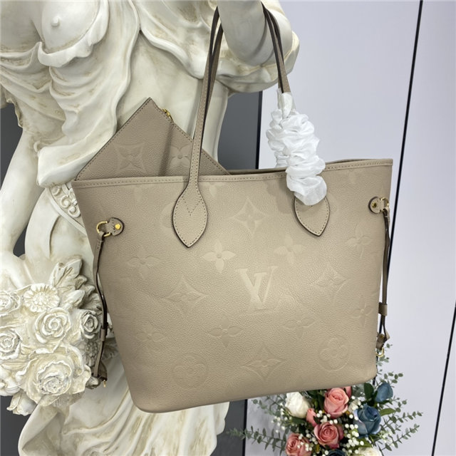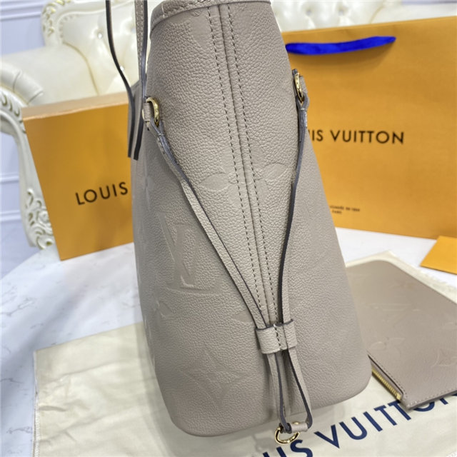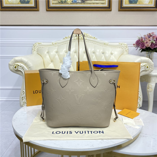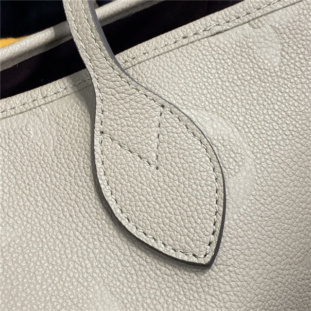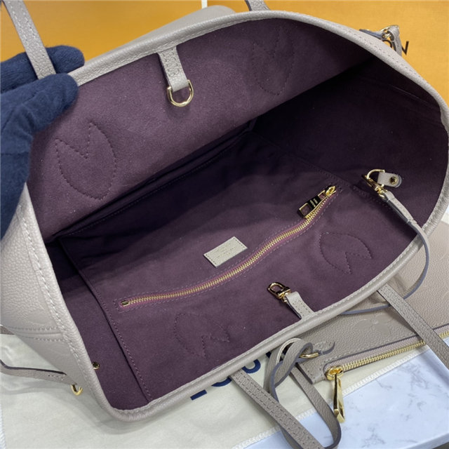 The essential Neverfull MM tote now comes in embossed Monogram Empreinte leather. Its generous dimensions make this bag ideal for everyday use while the long shoulder handles and supple leather mean it’s comfortable to carry. With the side laces cinched, this roomy carryall becomes a stylish city bag. It can be worn over the shoulder or on the elbow.