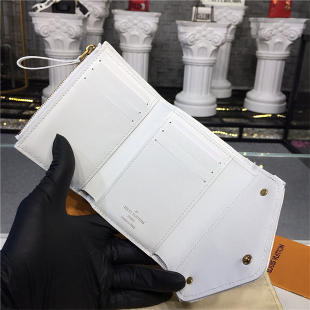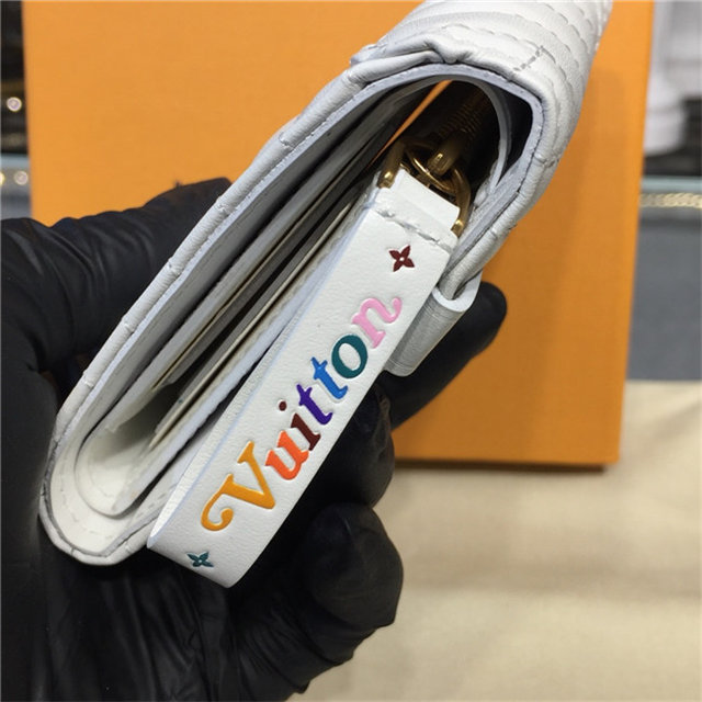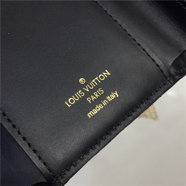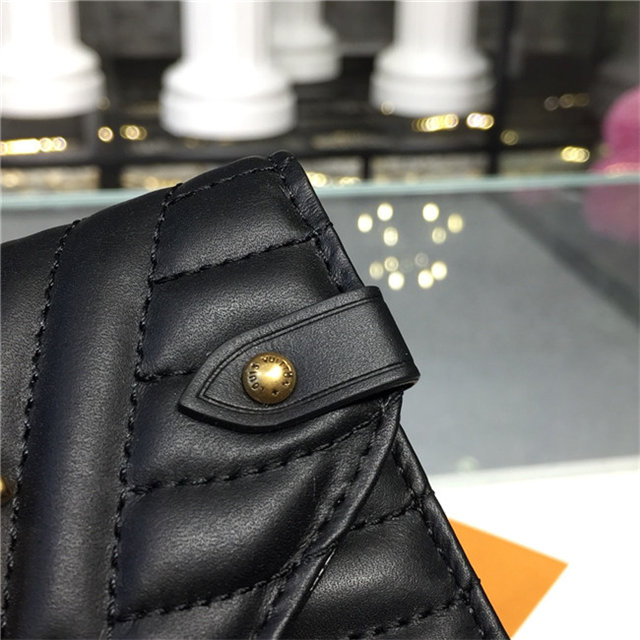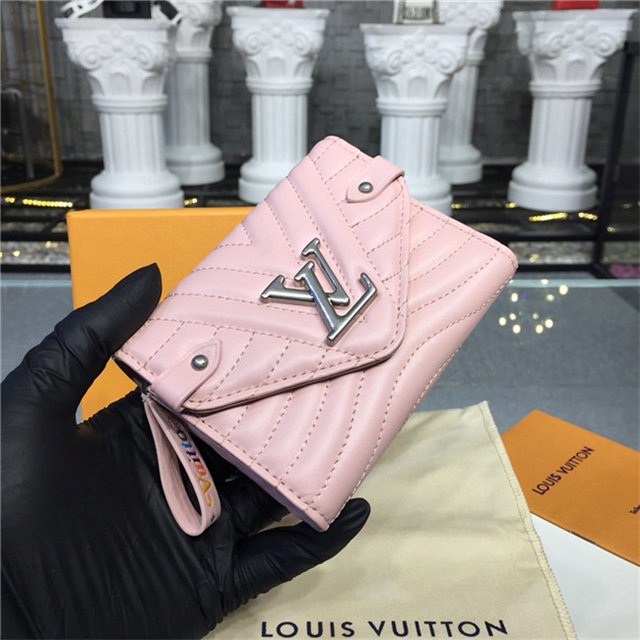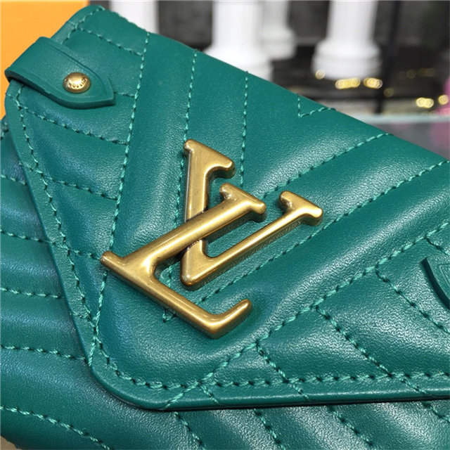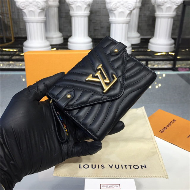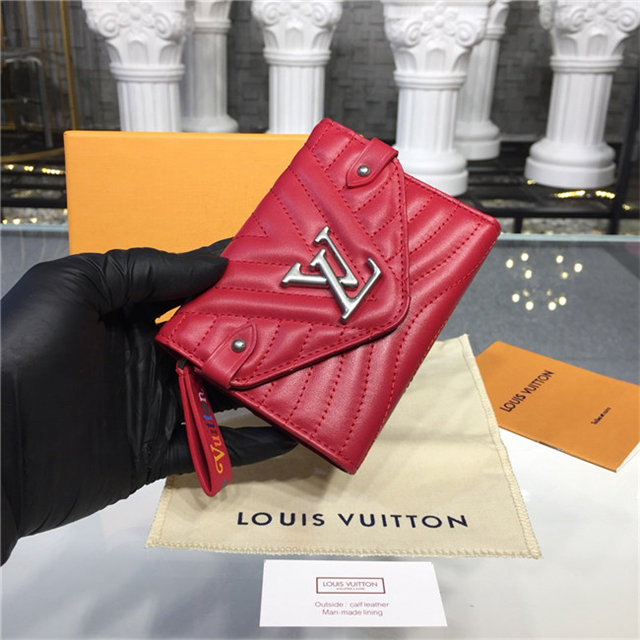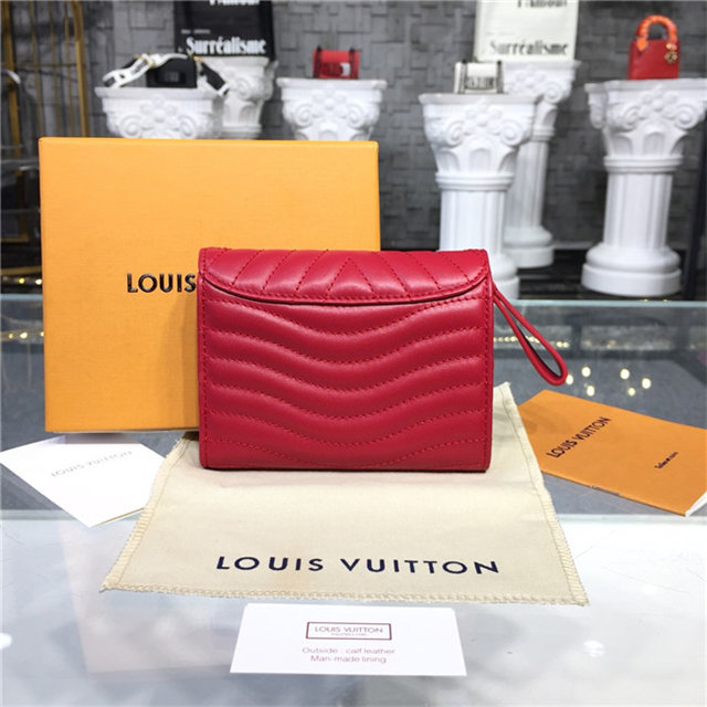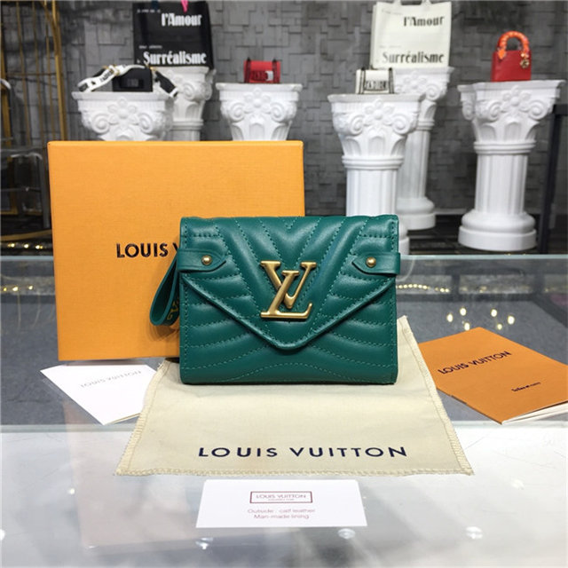 The New Wave compact wallet is crafted from exceptionally smooth, supple calf leather, which is quilted with a wave pattern inspired by a historic Louis Vuitton trunk. Lightweight and space-efficient, this envelope-style wallet offers a variety of pockets and credit-card slots. The flap is signed with an iconic LV Initials accessory.