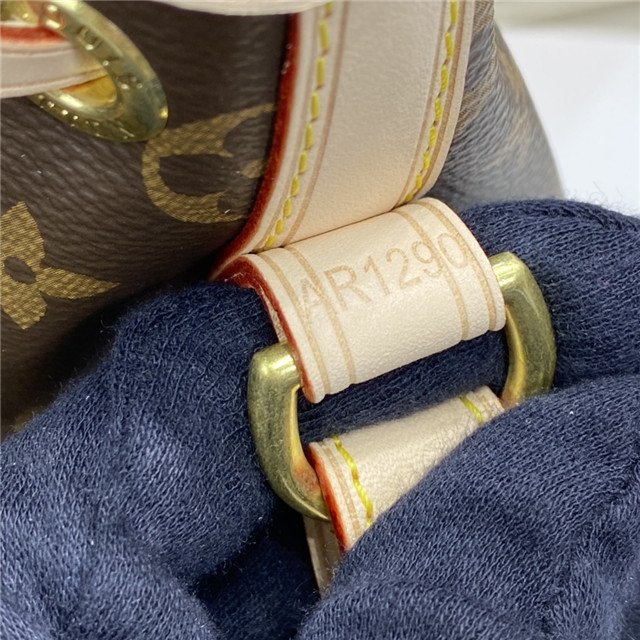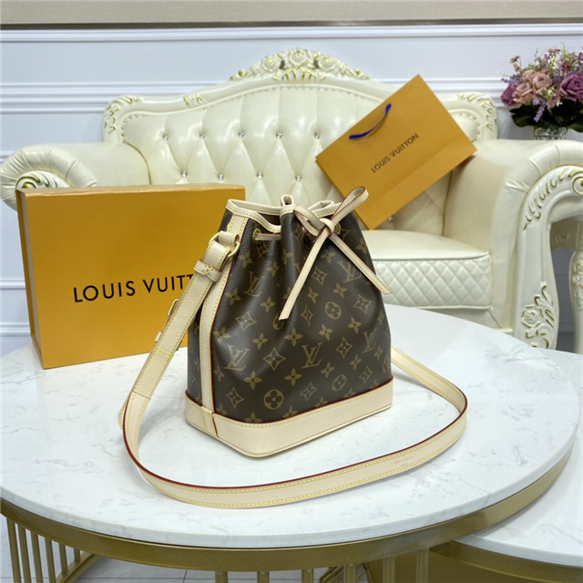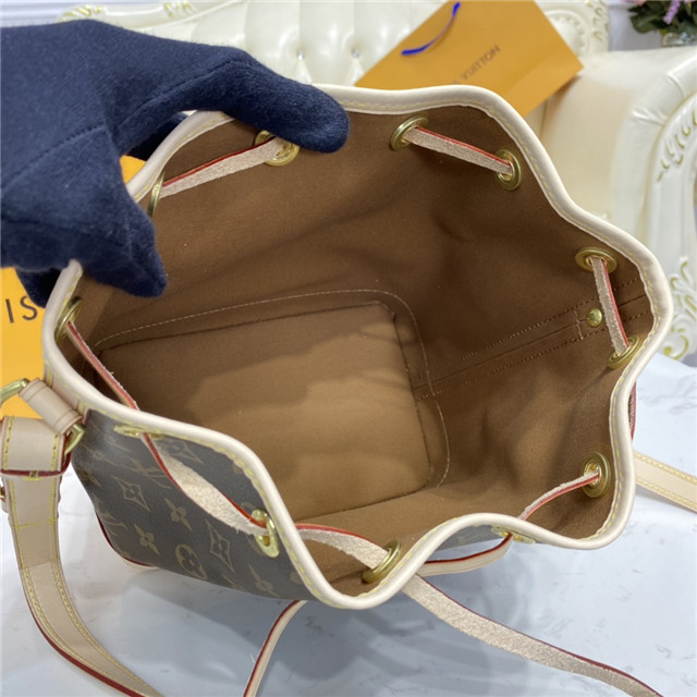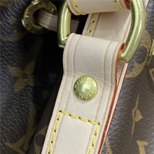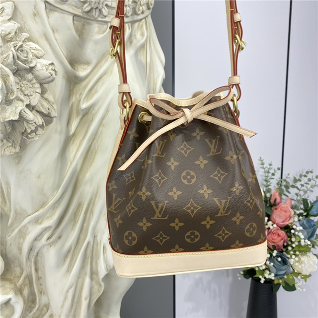 the Noe in Monogram canvas sports the original’s signature leather drawstring,
