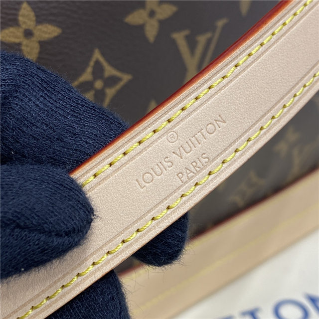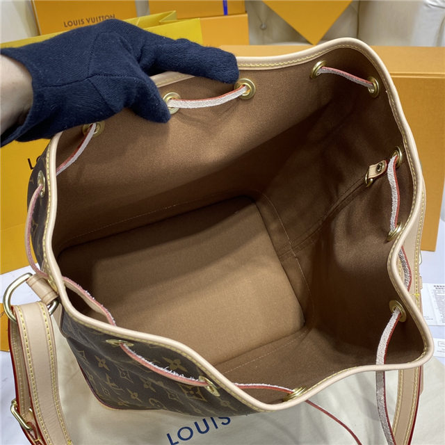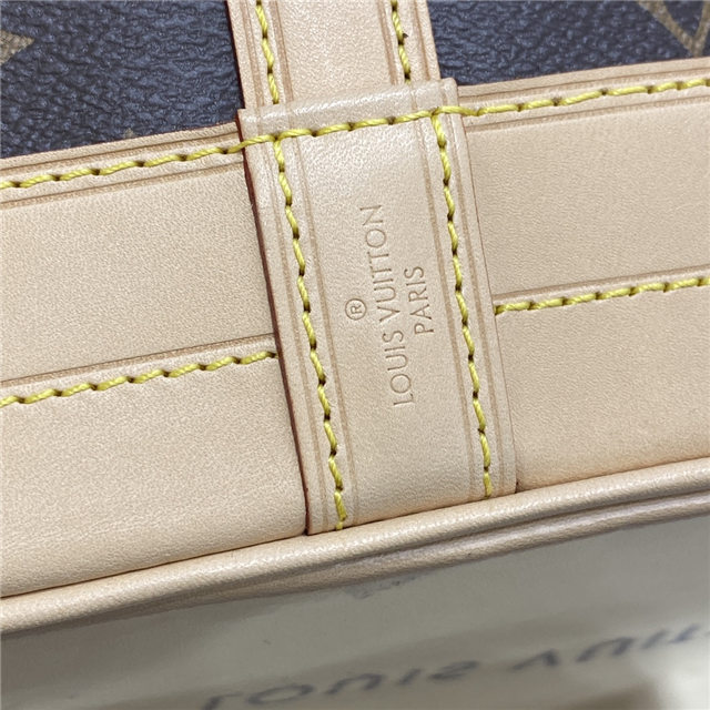 The Noé bucket bag harks back to a design from 1932. A Champagne producer asked Gaston-Louis Vuitton to develop a sturdy, stylish bag in which he could transport five bottles of bubbly. This model in body-friendly Monogram canvas retains key features of the original – the iconic shape, generous volume, drawstring closure – but is made for modern life. The leather strap adjusts for comfortable shoulder wear.