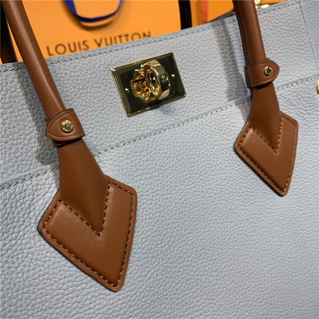 The On My Side tote is made from a combination of plain and perforated Monogram pattern calf leather. Contrasted with natural leather top handles and strap, the pastel tones perfectly fit the summer season. The bag’s interior can carry A4 files and folders and still have room for all essentials while the big outside pockets bring convenience.