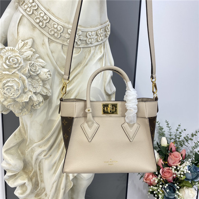 The On My Side PM is a compact tote bag made from soft calf leather with side panels in classic Monogram canvas. This adorable everyday bag boasts a wide removable strap for on-trend shoulder and cross-body wear as well as two top handles for hand and elbow carry. Two large outside pockets give easy access to essentials.
