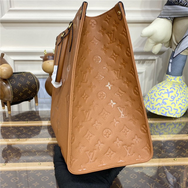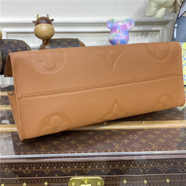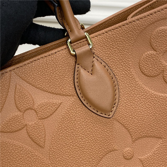 This versatile OnTheGo GM tote bag is made from Monogram-embossed leather, dyed a rich Cognac Brown. Its rectangular design and roomy interior make this carryall great for business, shopping, or travel. It has rolled-leather top handles and long shoulder straps, allowing numerous comfortable carry styles.