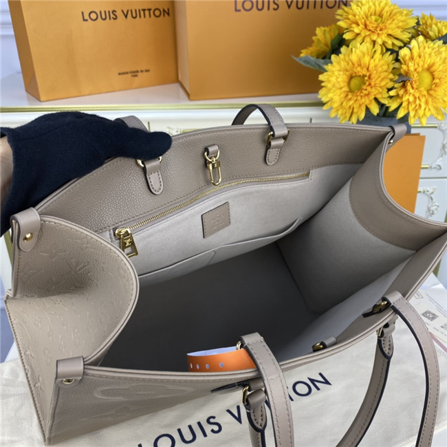 The stylishly oversized Onthego GM tote goes from workday to weekend without missing a beat. The bag’s square shape affords plenty of room for stowing office files and a laptop. For the first time, this model is offered in Monogram Empreinte Giant, a supple embossed leather. Versatile, it can be carried by hand or worn over the shoulder on its two long straps.
