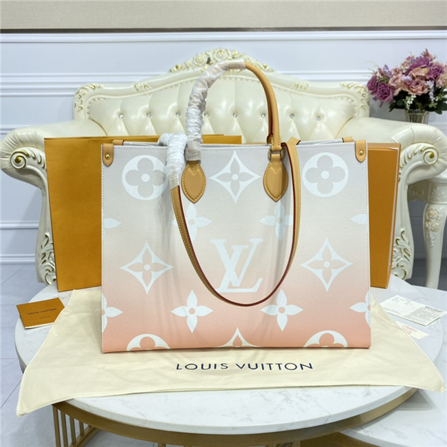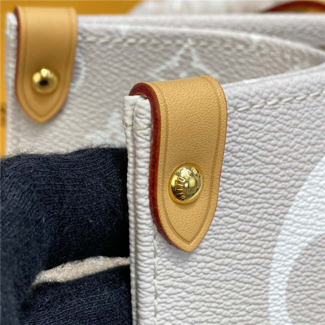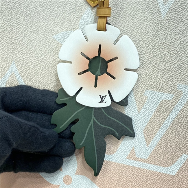 This OnTheGo GM tote bag is made from colored Monogram Giant canvas and is accessorized with a colorful leather flower charm. Roomy and comfortable to carry thanks to its shoulder straps and rolled leather top handles, this tote is perfect for everyday use. Numerous inside pockets including a zipped flat pocket keep essentials organized.