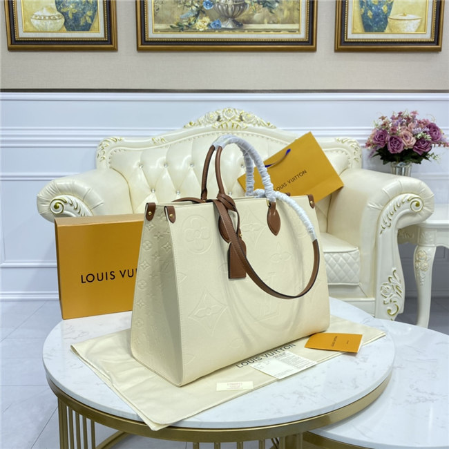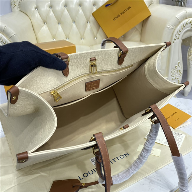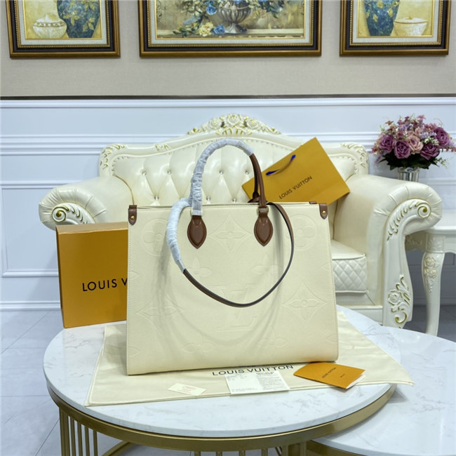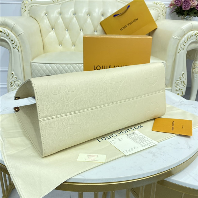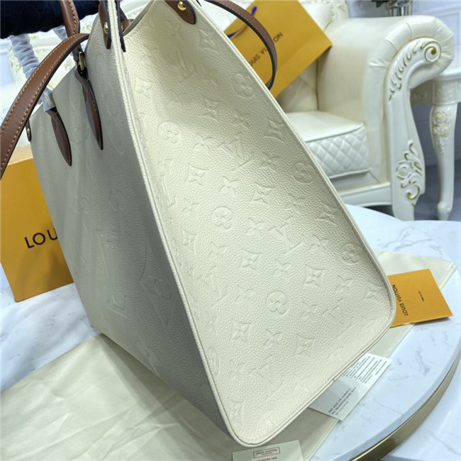 The stylishly oversized Onthego GM tote goes from workday to weekend without missing a beat. The bag’s square shape affords plenty of room for stowing office files and a laptop. For the first time, this model is offered in Monogram Empreinte Giant, a supple embossed leather. Versatile, it can be carried by hand or worn over the shoulder on its two long straps.