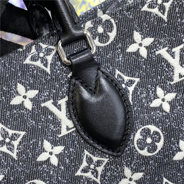 This season, the OnTheGo MM tote is offered in new Monogram Jacquard Denim, a pattern first seen on the Cruise 2023 runway. Woven specifically to obtain a raw, stone-washed effect, the gray jacquard lends the bag a modern allure. Lined with reverse Monogram, this roomy, versatile piece is finished with black-leather trim and silver-color hardware.