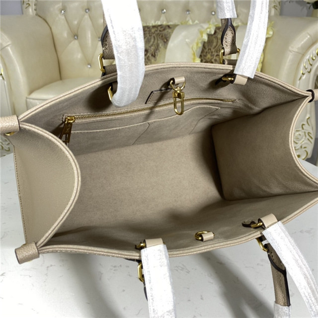 The OnTheGo MM is a medium-sized tote bag with two sets of handles, long and short, for hand and shoulder carry. Fashioned from supple grained cowhide leather, it features a Monogram pattern, printed on and embossed into the leather. The spacious interior, which can hold a laptop and other work essentials, make it a versatile everyday bag.