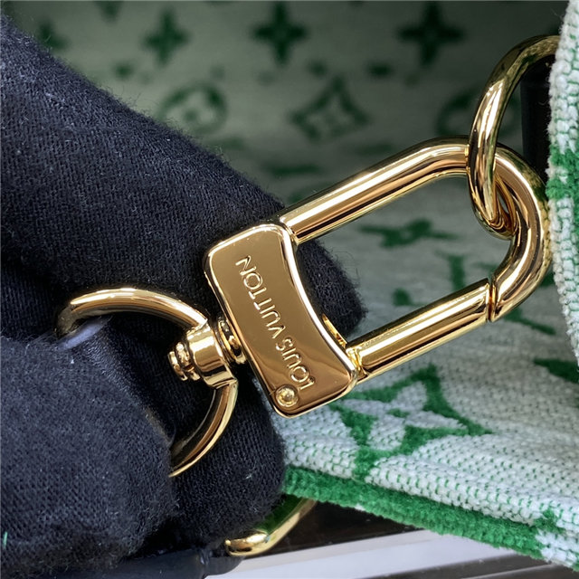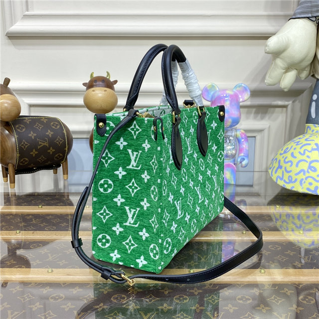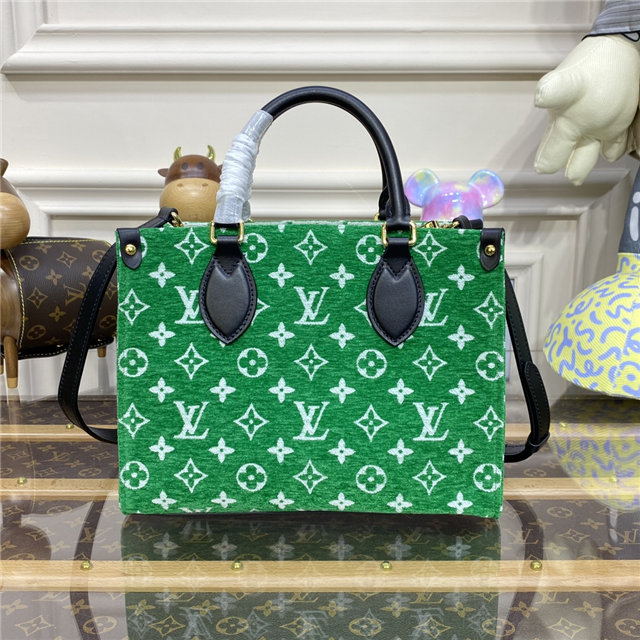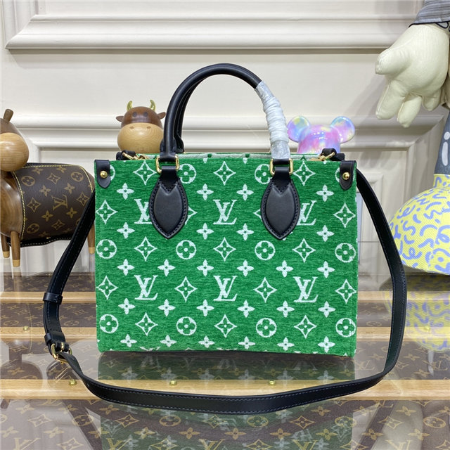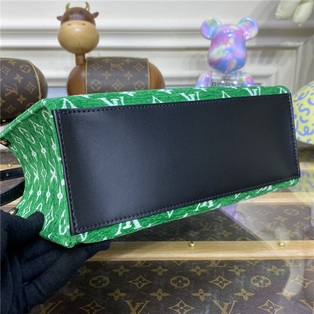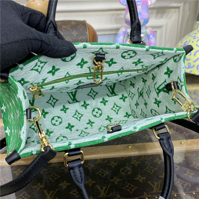 This sporty edition of the OnTheGo PM tote comes from the LV Match capsule, a tribute to the world of Grand Slam tennis. Crafted from a velvety Monogram jacquard with contrasting leather trim, it is lined with the same Monogram pattern in a reverse colorway for a playful effect. A fun, fashionable piece to carry courtside or in the city.