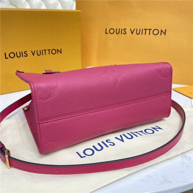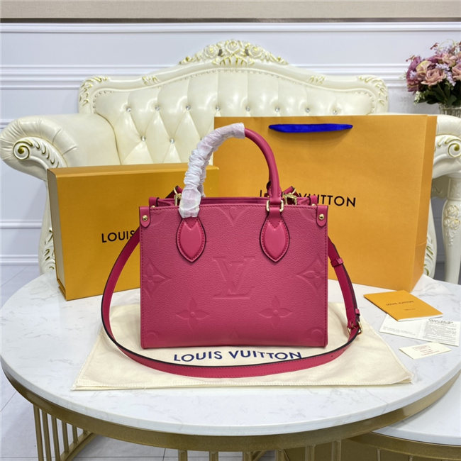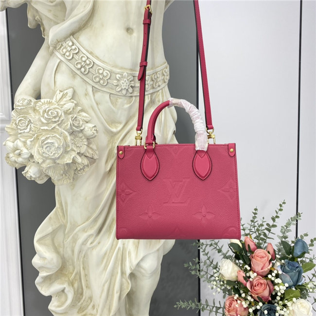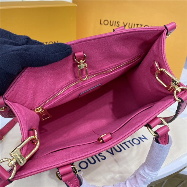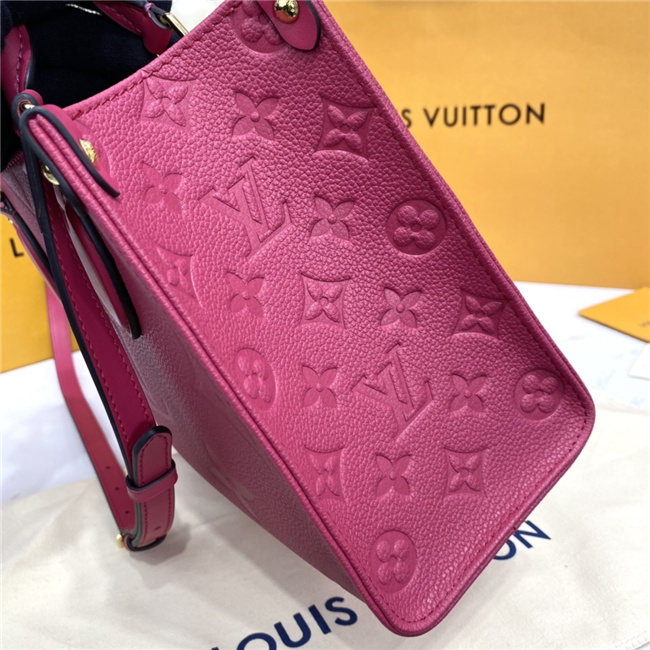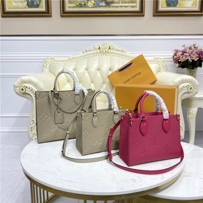 Inspired by Louis Vuitton’s famous Sac Plat from 1968, the Onthego PM tote is fashioned in Monogram Empreinte leather, embossed with a subtle embossed Giant Monogram pattern. This smaller version of the original Onthego fits essentials such as an iPad Mini. Articulated top handles and an adjustable removable strap offer a variety of carry options.