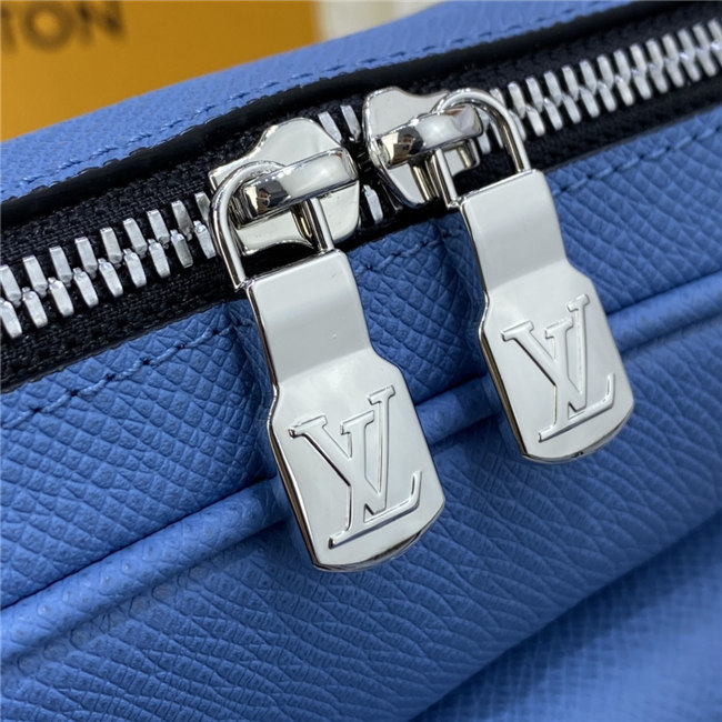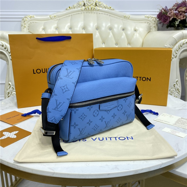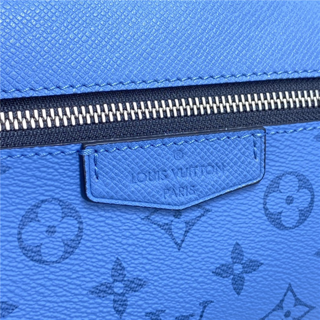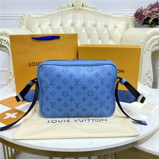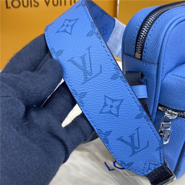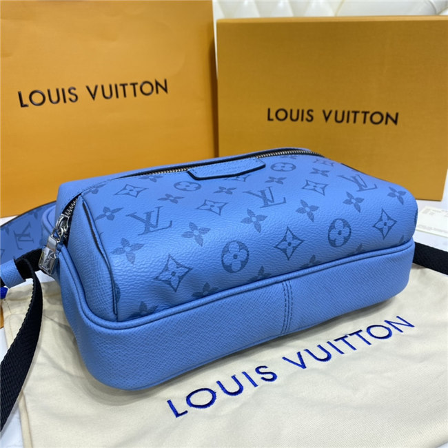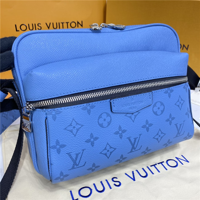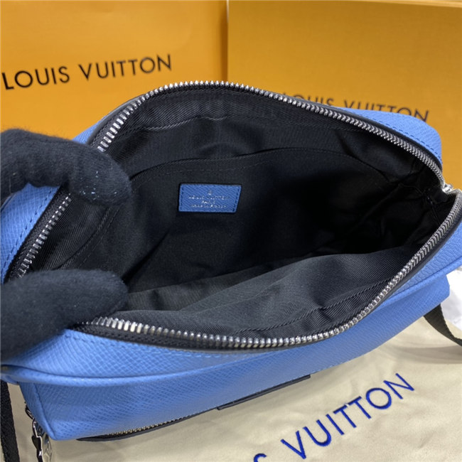 Signature canvas and the House’s supple Taiga leather come together in this Outdoor Messenger bag. Accented with silvery hardware, the on-trend Denim blue colorway will complement virtually any casual spring/summer silhouette. Practical as well as stylish, this hybrid piece keeps a man’s most-used essentials both secure and close at hand.