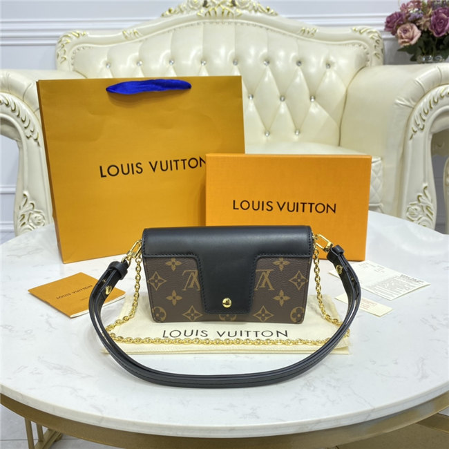 The Padlock On Strap bag comes in iconic Monogram canvas with a smooth cowhide leather flap. This chic, versatile design features a removable chain and a removable, adjustable strap for shoulder or cross-body carry, as well as a belt loop at the back. Ideal for essentials, it has a secure, magnetic closure with an LV-engraved padlock.
