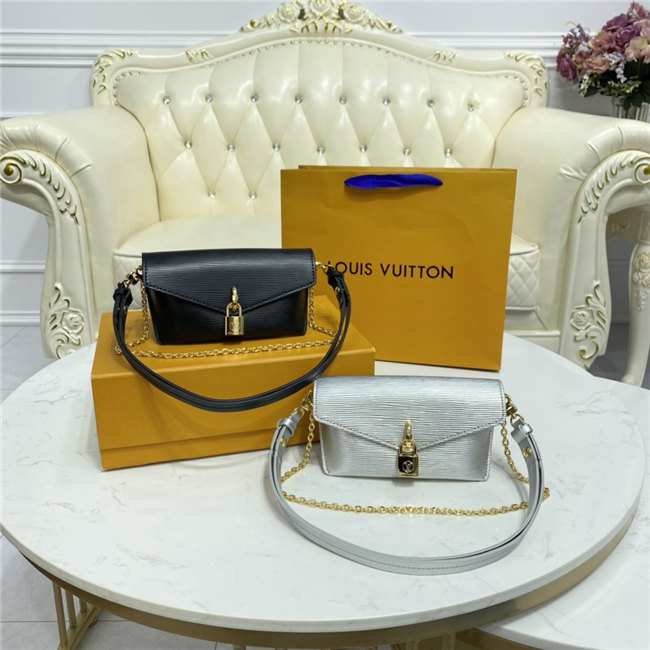 The Padlock On Strap bag is crafted from Louis Vuitton”s emblematic Epi leather, recognizable for its distinctive grain. Ideal for essentials, this contemporary design offers multiple carry options thanks to its removable chain, removable, adjustable strap, and belt loop at the back. It closes securely with a magnetic clasp accessorized with an LV-engraved padlock.