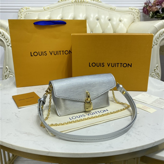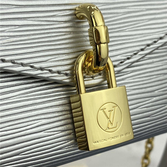 The Padlock On Strap bag is crafted from Louis Vuitton”s emblematic Epi leather, recognizable for its distinctive grain. Ideal for essentials, this contemporary design offers multiple carry options thanks to its removable chain, removable, adjustable strap, and belt loop at the back. It closes securely with a magnetic clasp accessorized with an LV-engraved padlock.