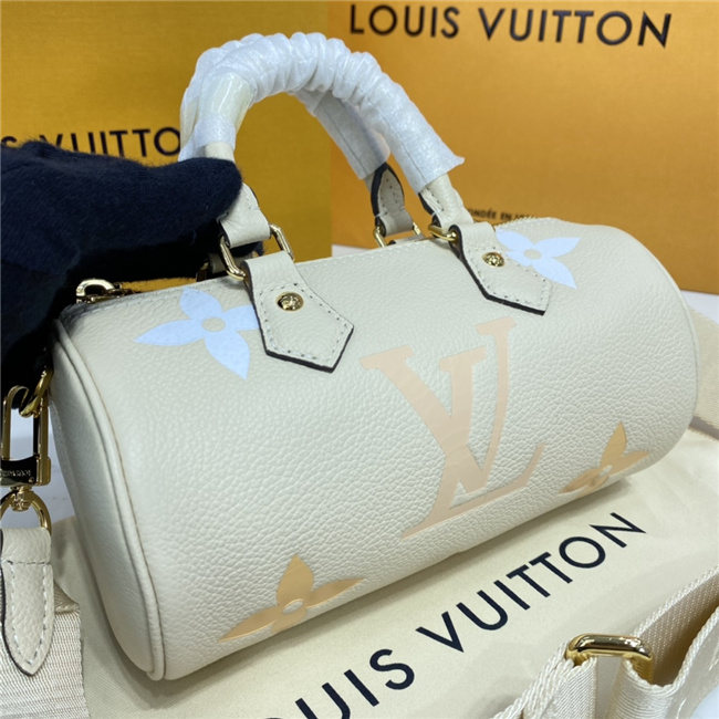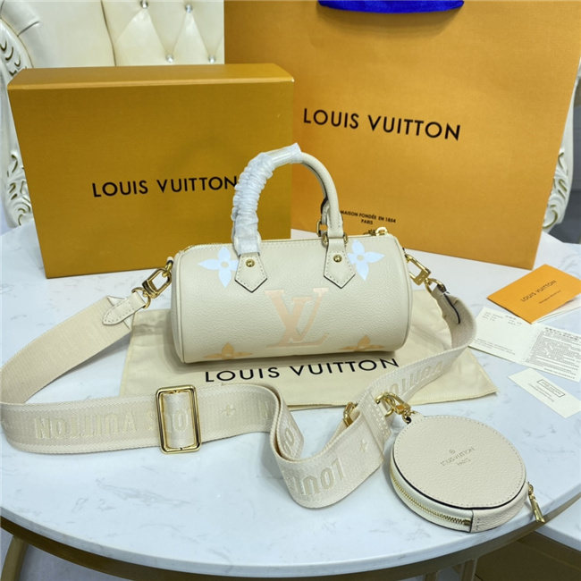 This adorable version of the historic Papillon shape, the Papillon BB carryall bag, is made from pastel Monogram Empreinte leather with a gradient Monogram print. Its iconic lines get a sporty update thanks to its detachable Louis Vuitton jacquard strap. The removable round coin purse brings a playful touch.