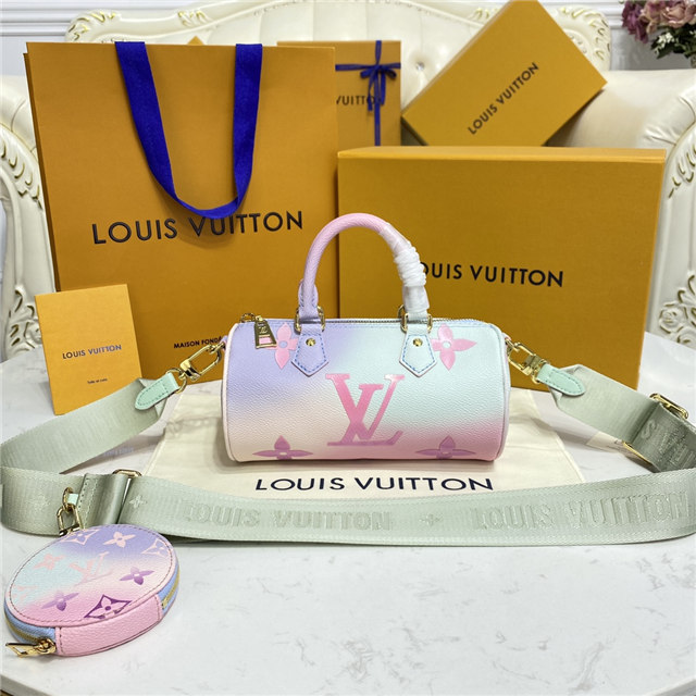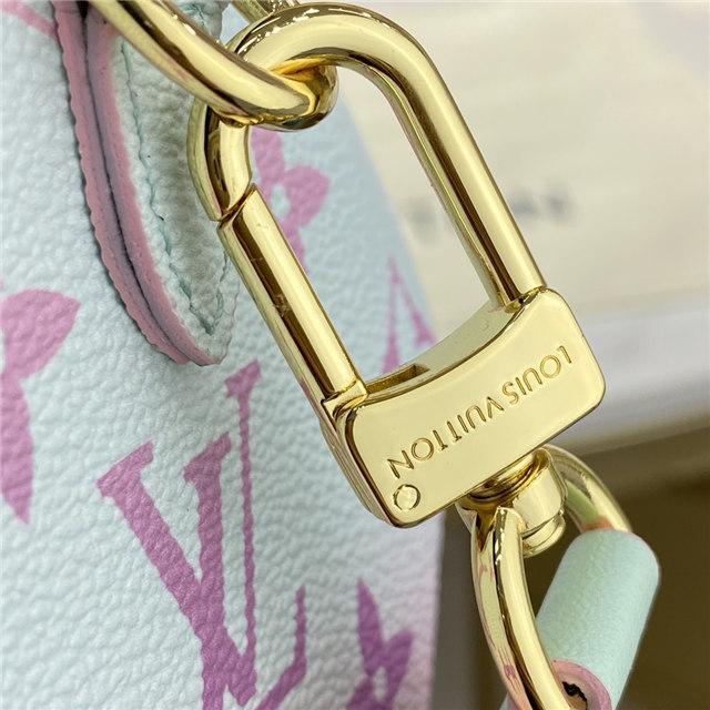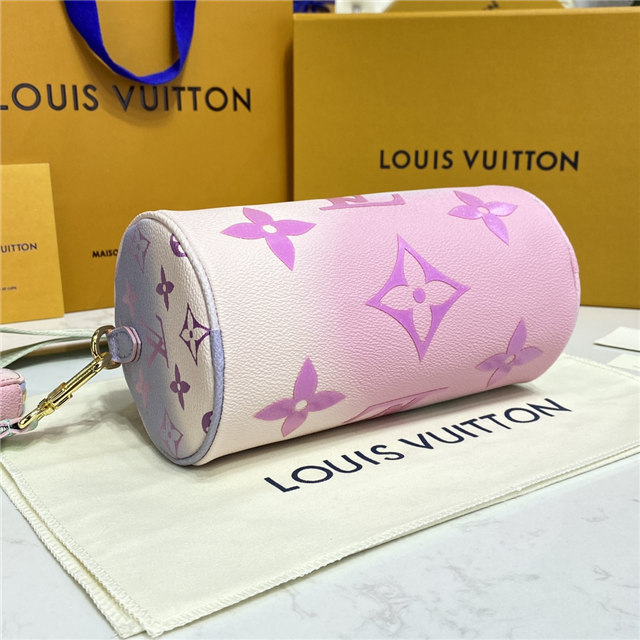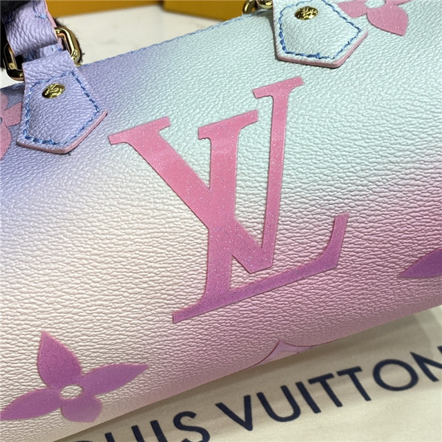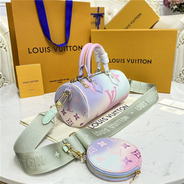 The charming Papillon BB handbag is arrayed for Spring in a new gradient colorway of Monogram canvas, featuring a graphic oversize motif. A round coin purse snaps on to the wide jacquard strap, adding a playful touch. For a dressier look, the strap can be detached and the bag carried by its classic Toron top handles.