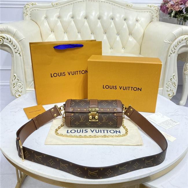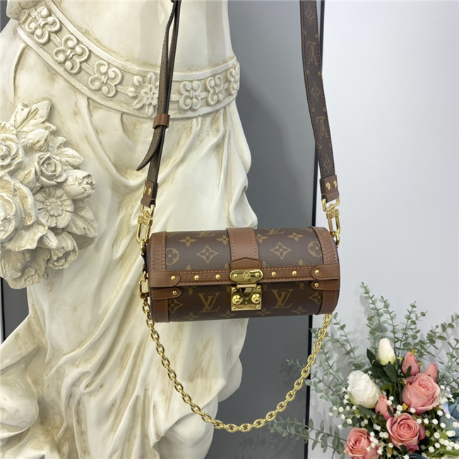 Made from embossed Epi leather and finished with metallic rivets and an S-lock, the distinctive Papillon Trunk handbag combines contemporary style with traditional Louis Vuitton design cues. This semi-rigid baguette bag can be carried by hand but also boasts a detachable strap for shoulder and cross-body carry.