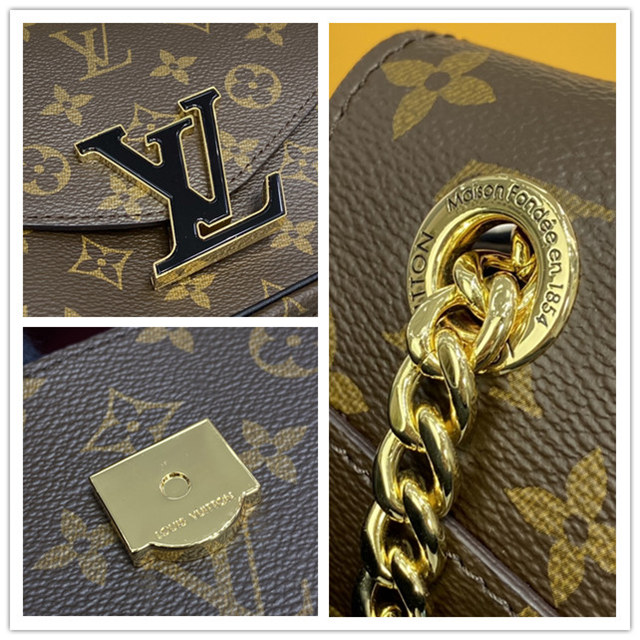 The compact Passy handbag in Monogram canvas with a sliding chain is the quintessence of casual chic. A functional day-to-evening bag, it has front and back outside pockets for quick access to essentials as well as two inside pockets. It closes with a magnetic LV lock in black resin with a gold-color outline.