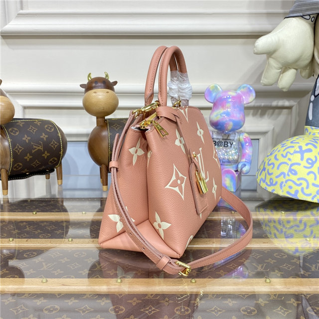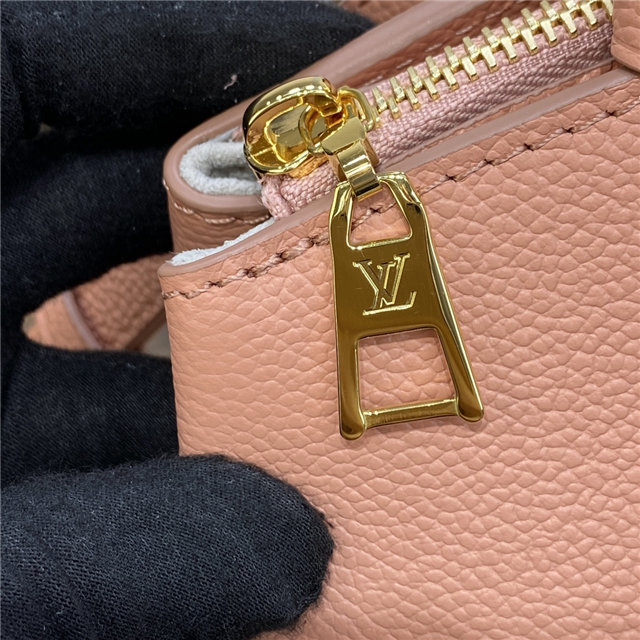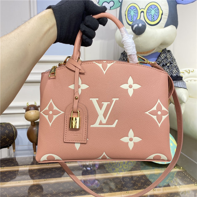 Smart and sophisticated, the Petit Palais handbag is crafted from Monogram Empreinte embossed leather, edited for Winter 2022, in a fresh, delicate bicolor combination. The supple leather is accented with golden hardware, including a chic padlock – a nod to the Maison’s legacy of fine luggage. The detachable strap can be adjusted for shoulder or cross-body wear.
