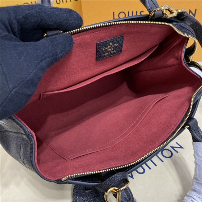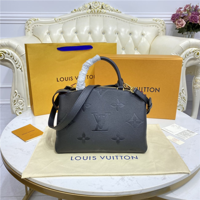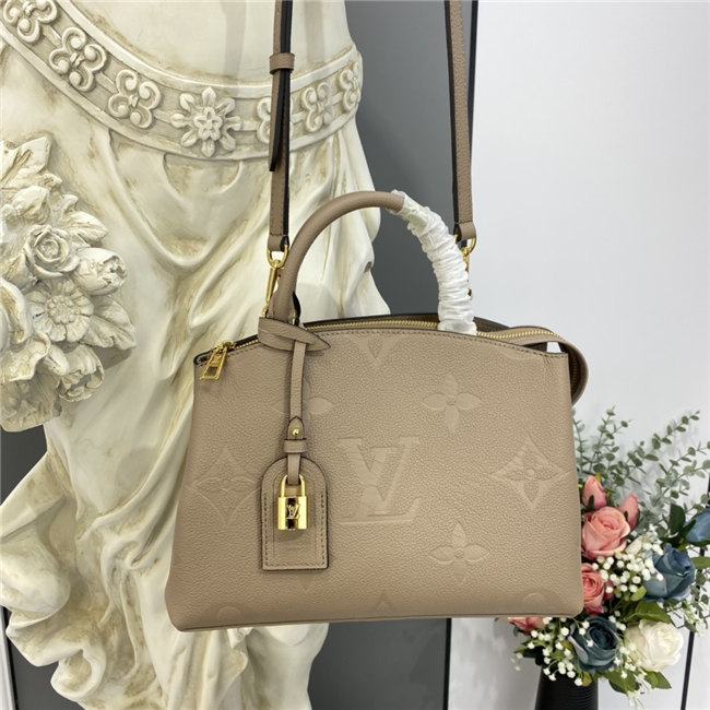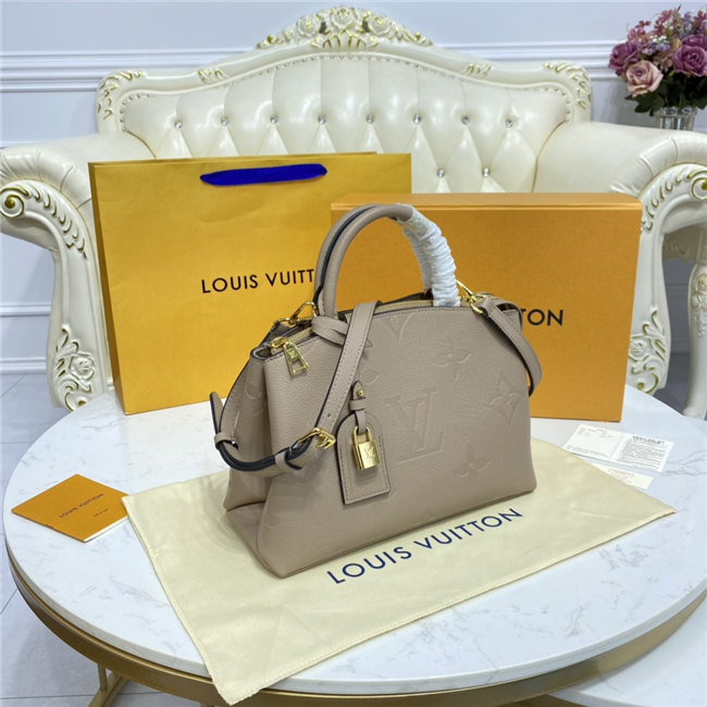 The sophisticated Petit Palais is a smaller handbag made from soft, grained leather with an embossed oversized Monogram pattern. The leather name tag and gold-color padlock bring a touch of elegance and evoke the House’s travel roots. There are two top handles for hand carry; the removable and adjustable strap provides comfortable shoulder wear.
