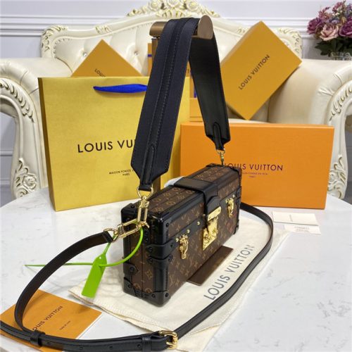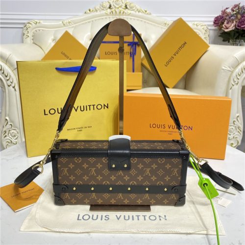 Stretched slightly longer than the classic Petite Malle handbag, the Petite Malle East-West is Nicolas Ghesquière’s celebration of the House’s founder 200th anniversary. It’s made from Monogram canvas with black-leather trim. It can be carried by hand – as seen on the runway during the Spring-Summer 2022 Show – or worn on the shoulder with one of its two detachable straps.