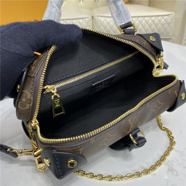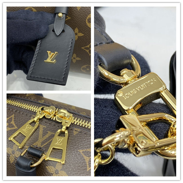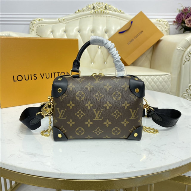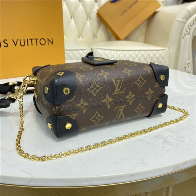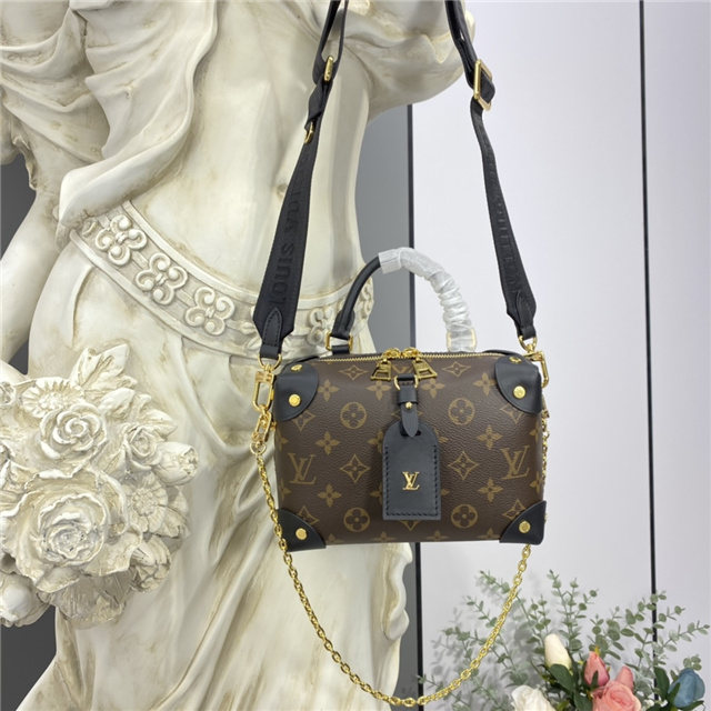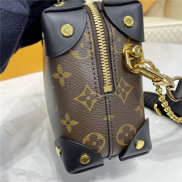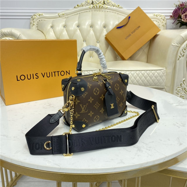 The distinctive Petite Malle Souple is a soft handbag steeped in the House history. The Monogram canvas, riveted leather corners, and leather name tag all evoke Louis Vuitton’s legacy as a trunk maker. A gold-color nautical chain and wide removable strap, with Louis Vuitton Malletier embroidered on it, bring up-to-the-minute style.