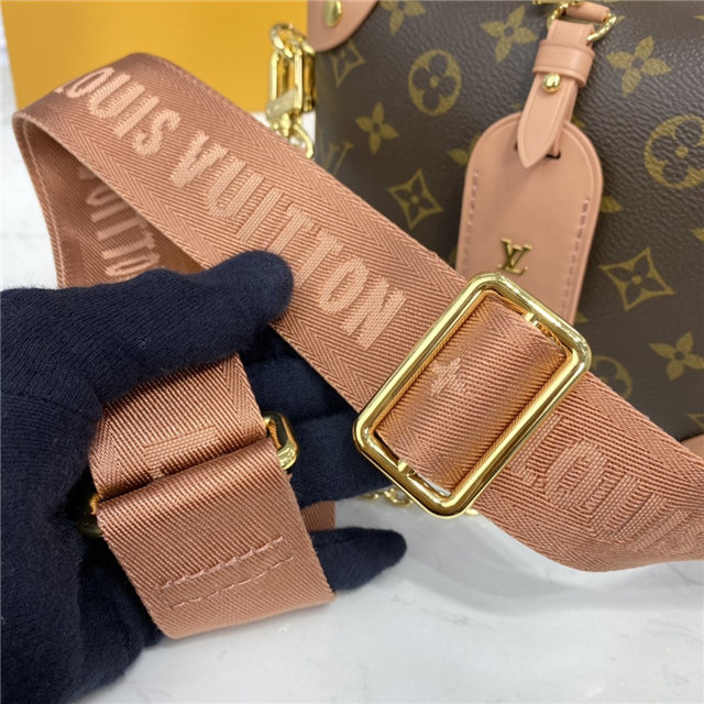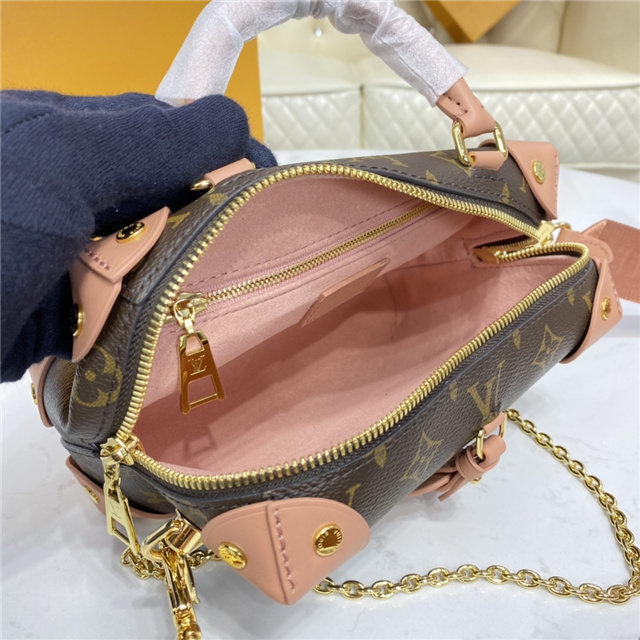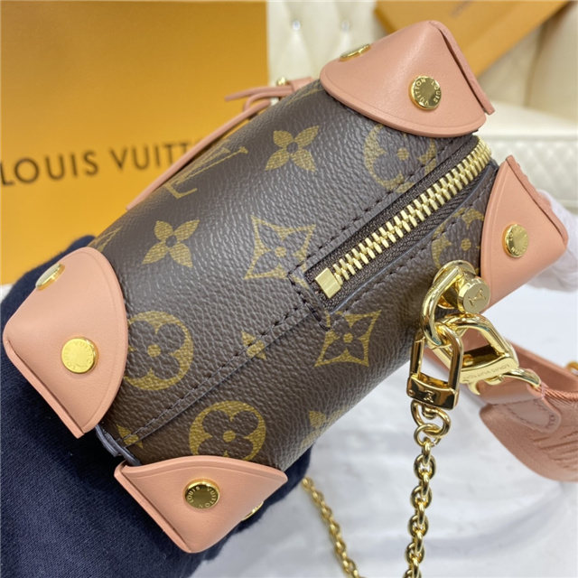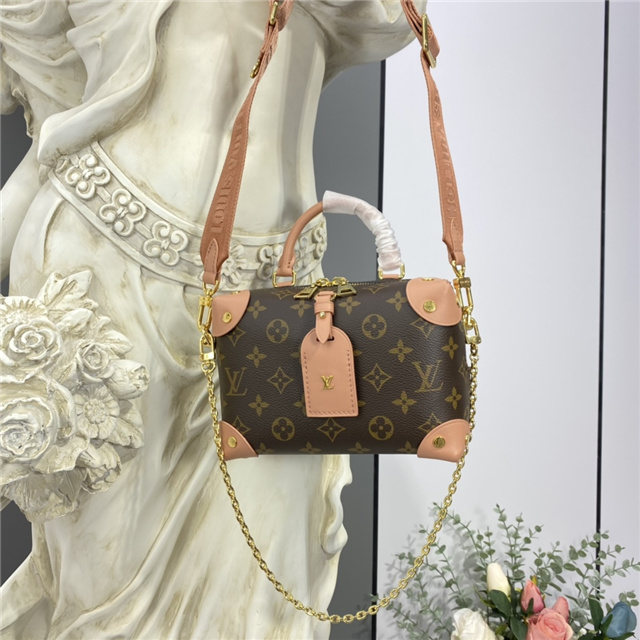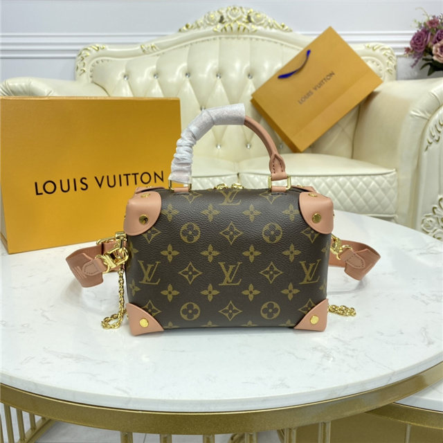 The distinctive Petite Malle Souple is a soft handbag steeped in the House history. The Monogram canvas, riveted leather corners, and leather name tag all evoke Louis Vuitton’s legacy as a trunk maker. A gold-color nautical chain and wide removable strap, with Louis Vuitton Malletier embroidered on it, bring up-to-the-minute style.