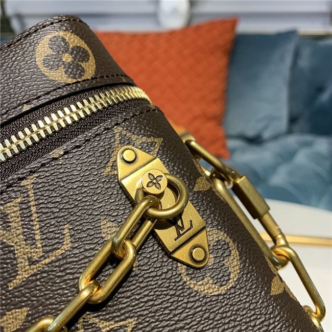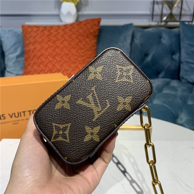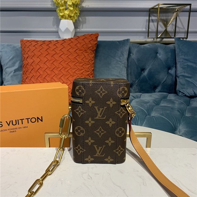 Virgil Abloh’s new Phone Box is a compact bag, perfect for carrying small essentials. Made from classic Monogram canvas with an adjustable strap in smooth leather, it features Abloh’s gold-color chain signature. Inside there’s a mini flat pocket for credit cards and a driver’s license.