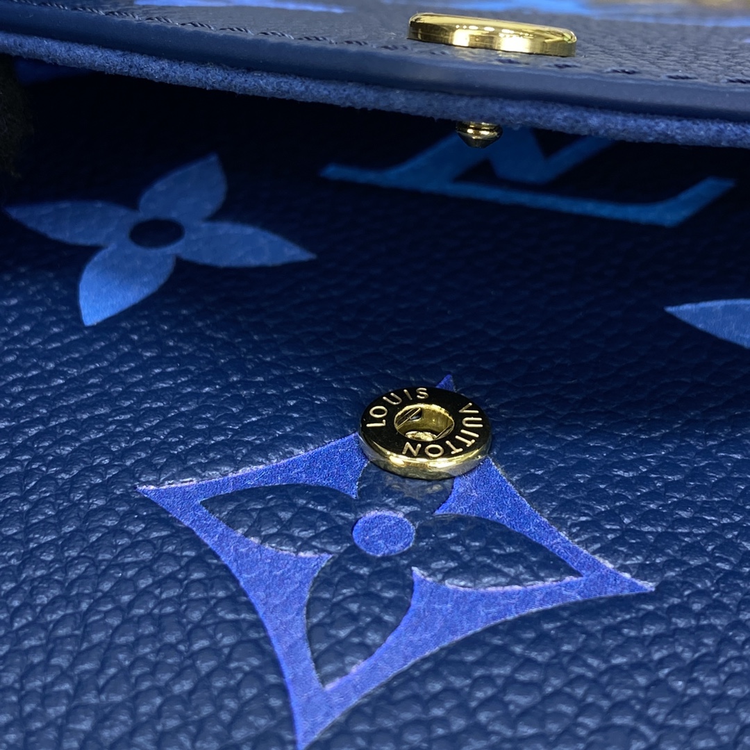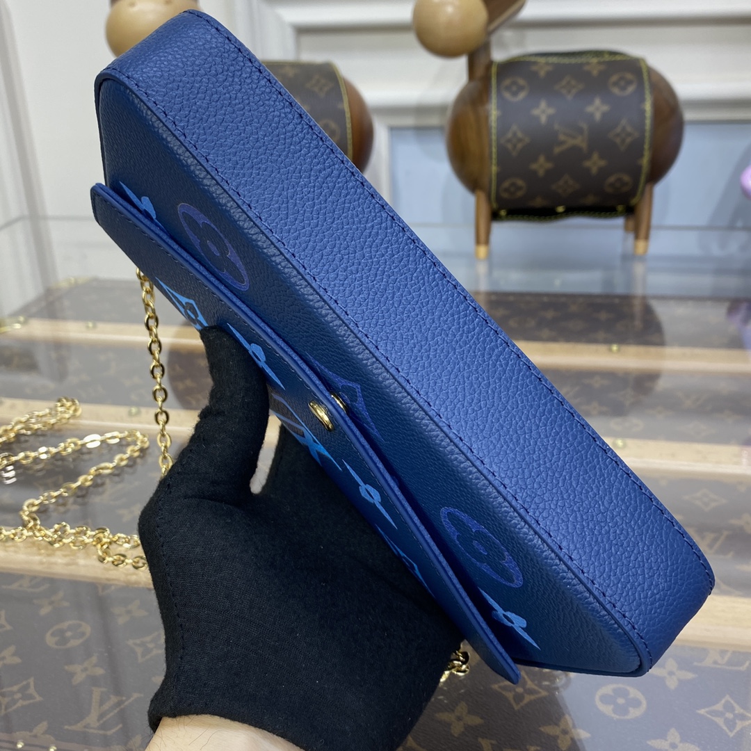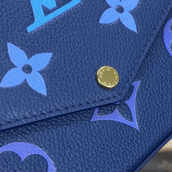 For the LV Gradient collection, the Félicie Pochette is revisited in supple, grained Monogram Empreinte leather, whose embossed Monogram pattern is printed with a gradation of ocean blues. This chic pouch comes with two removable pockets, including one with eight card slots. Its gold-tone chain can also be removed, enabling it to be carried as a clutch as well as a shoulder bag.