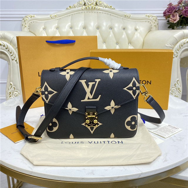 For Spring 2021, the Pochette Metis is fashioned from Monogram Empreinte leather with the embossed large Monogram pattern in a contrasting color. Accented with the emblematic S-lock found on the House’s historic trunks, this compact bag features a stylish top handle and a removable strap for shoulder or cross-body wear.