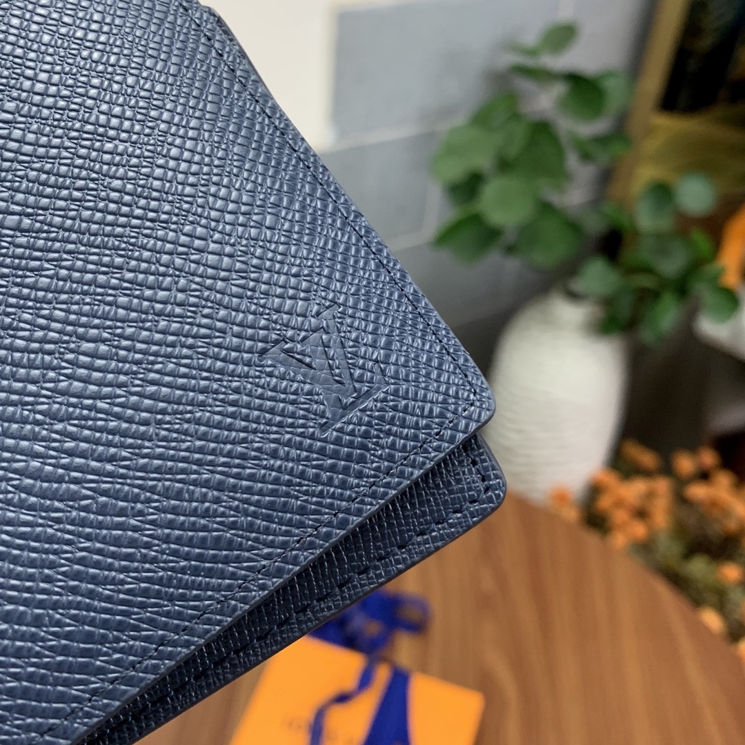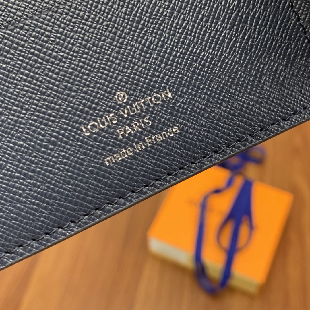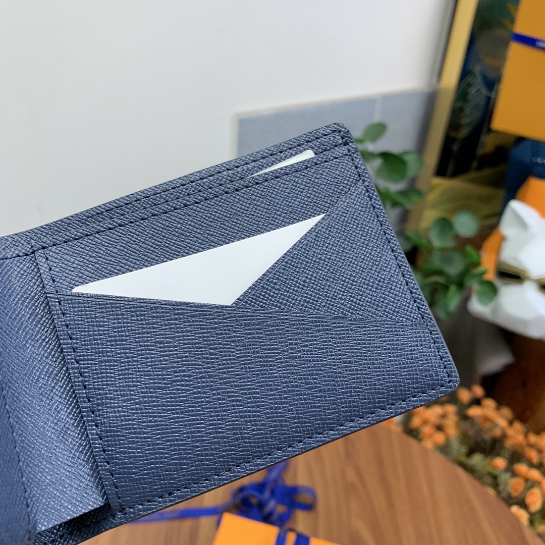 Top-grade original factory M30952 Blue Cross Grain Short Wallet! This men’s short wallet belongs to the Damier Graphite canvas series, featuring a stylish and understated design. It is convenient for storing bills, credit cards, and receipts. Lightweight and durable, it can easily fit into a jacket or pants pocket.