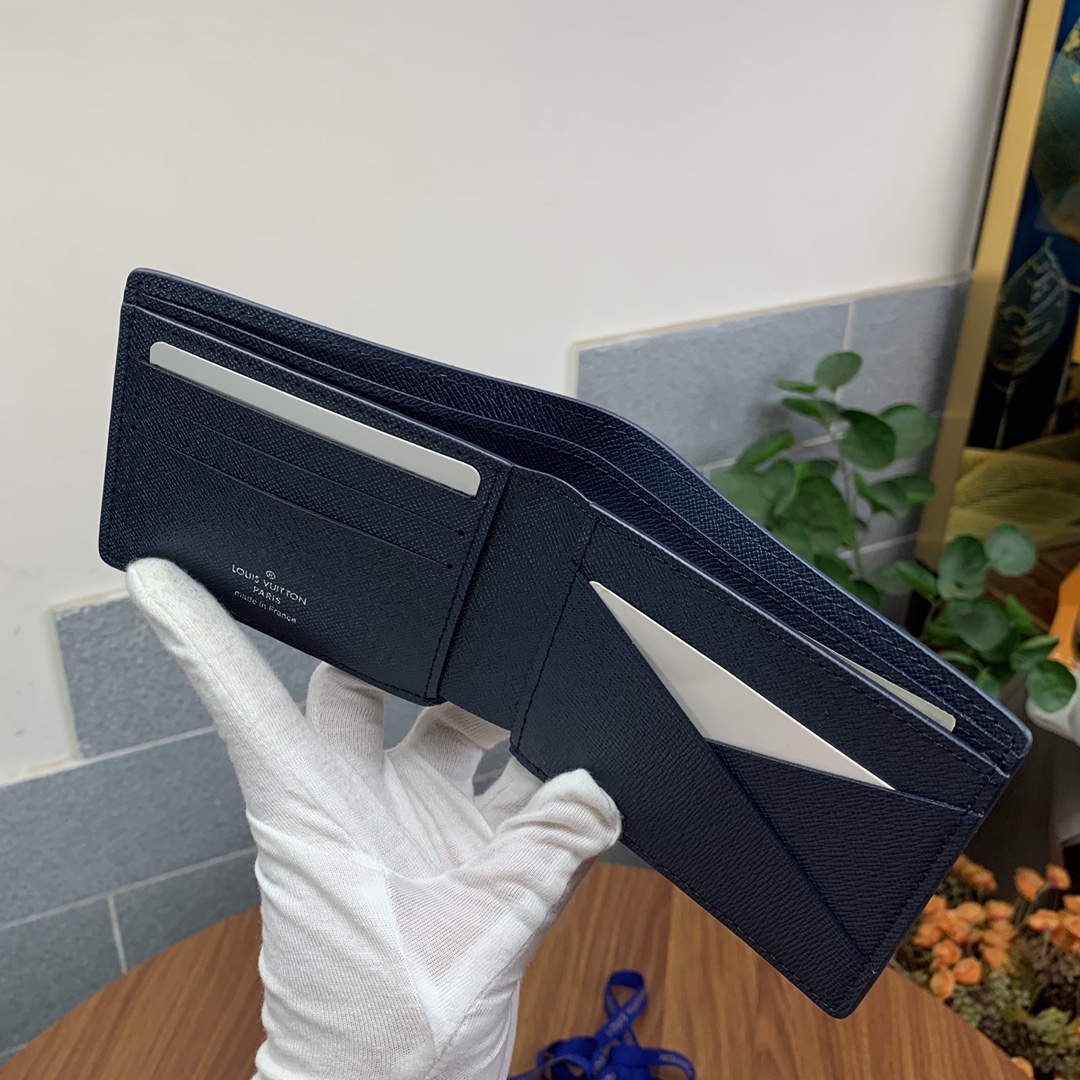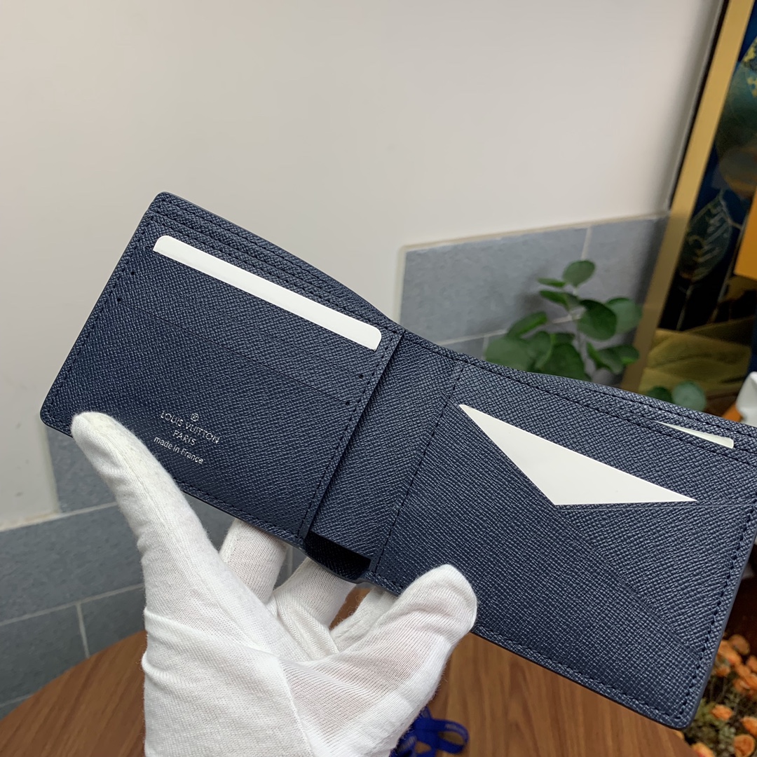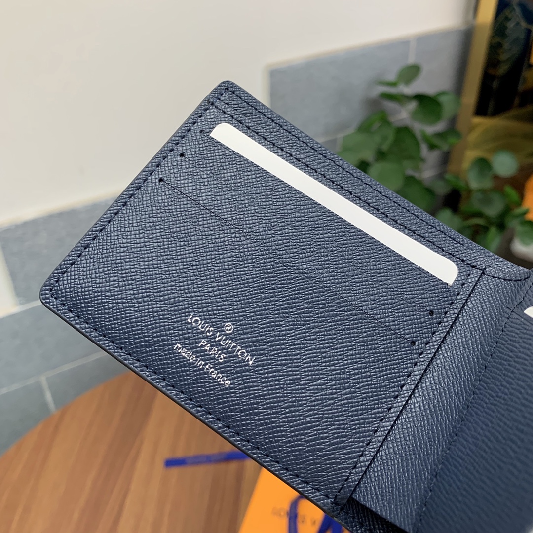 Top-grade original factory M30952 Blue Cross Grain Short Wallet! This men’s short wallet belongs to the Damier Graphite canvas series, featuring a stylish and understated design. It is convenient for storing bills, credit cards, and receipts. Lightweight and durable, it can easily fit into a jacket or pants pocket.