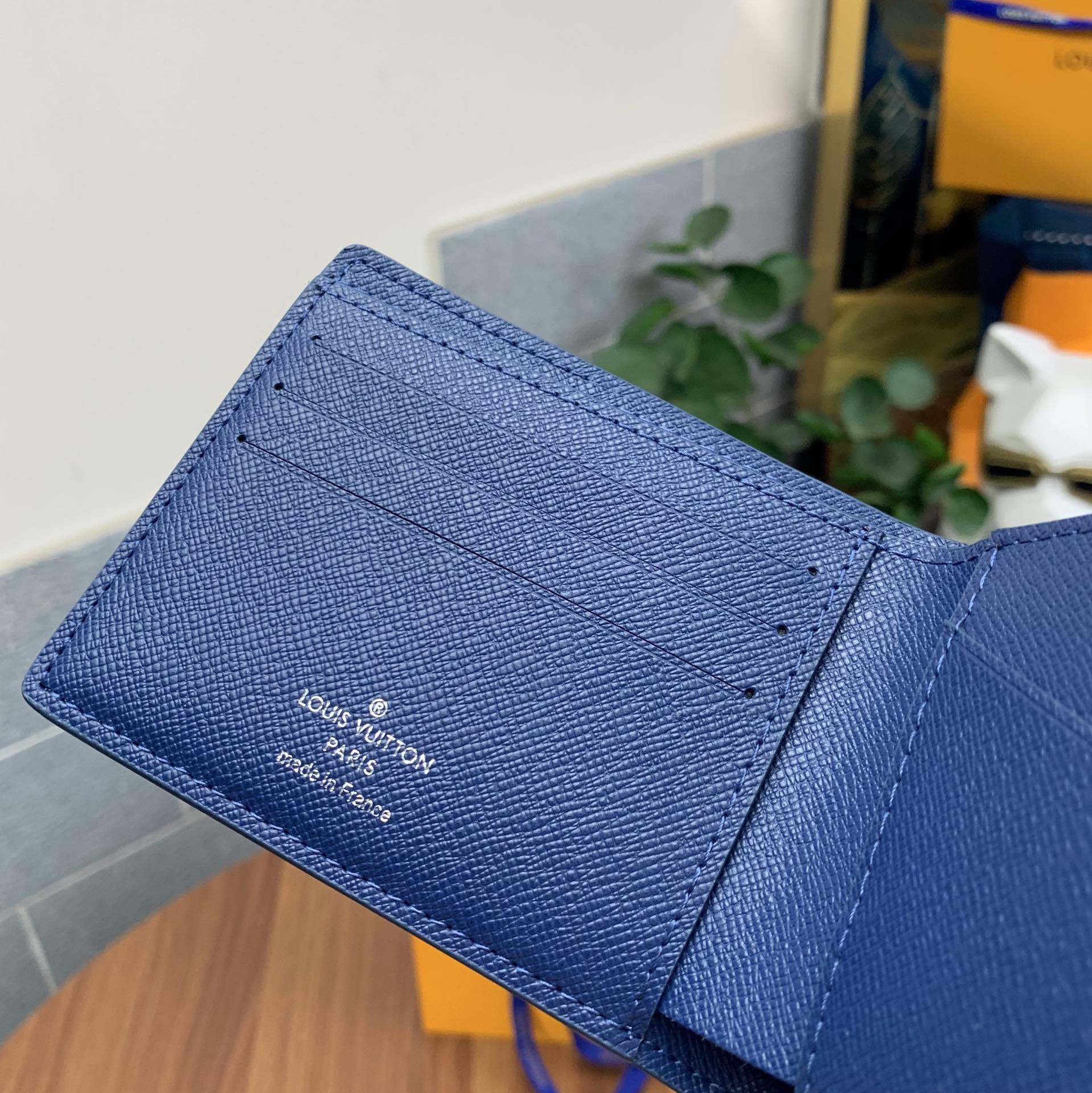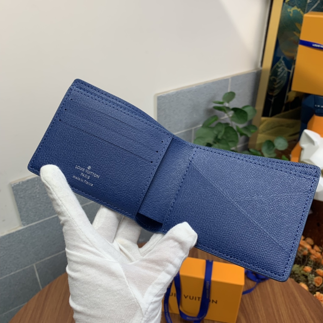 Top-grade original factory M60628 Blue Ripple Short Wallet! This men’s short wallet belongs to the Damier Graphite canvas series, featuring a stylish and understated design. It is convenient for storing bills, credit cards, and receipts. Lightweight and durable, it can easily fit into a jacket or pants pocket.