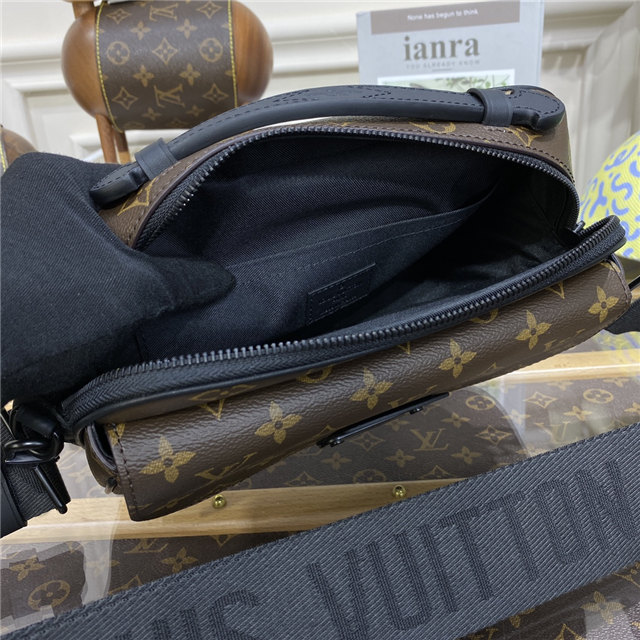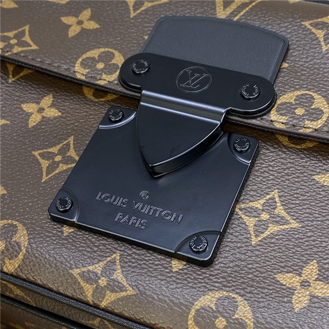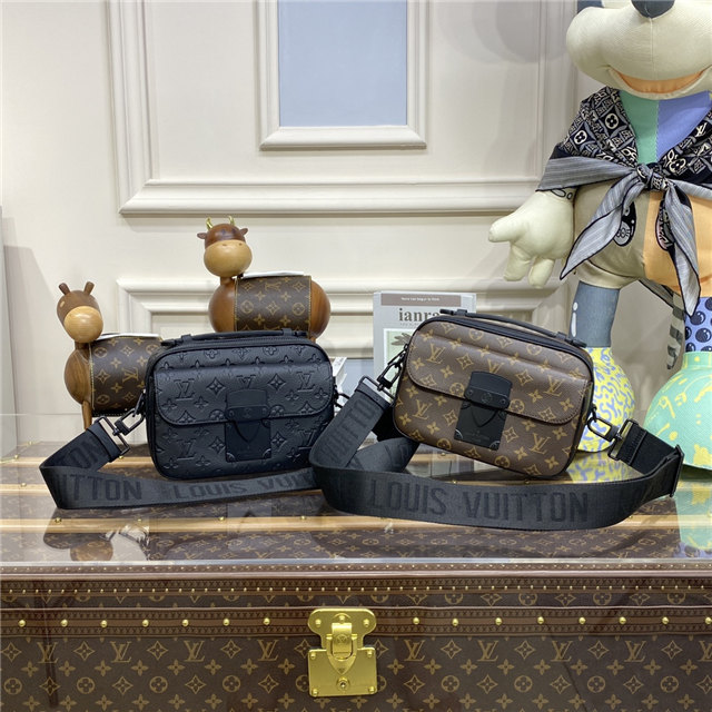 The S Lock Messenger in Monogram Macassar canvas comes with an exclusive new closure inspired by a trunk lock invented by Georges Vuitton in 1886. A special finishing process gives the magnetic metal clasp a bold ultra-modern look. Additional features like the roomy zipped compartment, trunk-style leather handle and LV signature strap make this a stylish, user-friendly bag.
