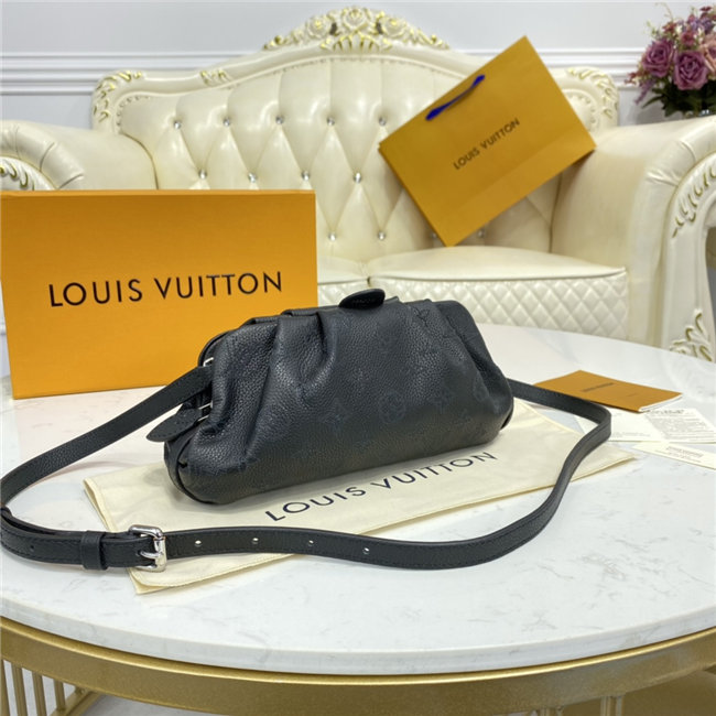The Scala mini pouch has a soft, body-friendly shape inspired by the folds and pleats of drapery. It is crafted from supple Mahina calf leather, whose delicate perforations replicate Louis Vuitton”s iconic Monogram pattern. Large enough to hold everyday essentials, it has a removable, adjustable strap, enabling it to be carried in several different ways.