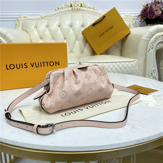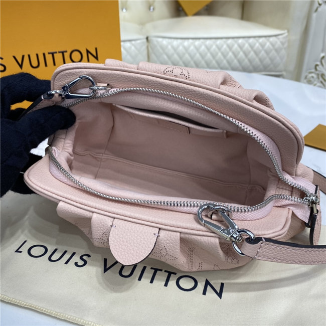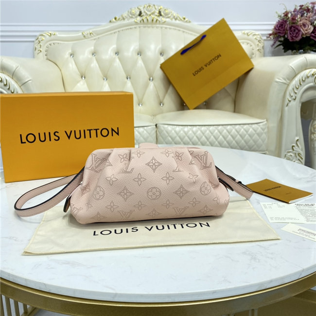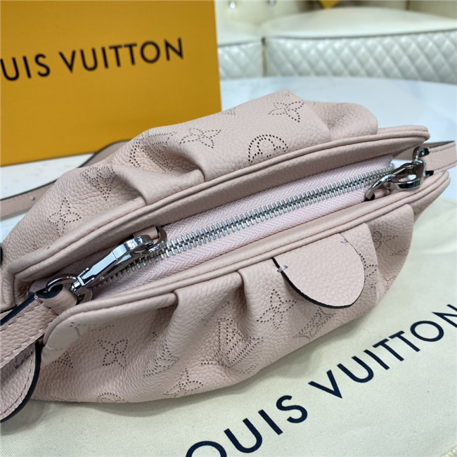 The Scala mini pouch has a soft, body-friendly shape inspired by the folds and pleats of drapery. It is crafted from supple Mahina calf leather, whose delicate perforations replicate Louis Vuitton”s iconic Monogram pattern. Large enough to hold everyday essentials, it has a removable, adjustable strap, enabling it to be carried in several different ways.
