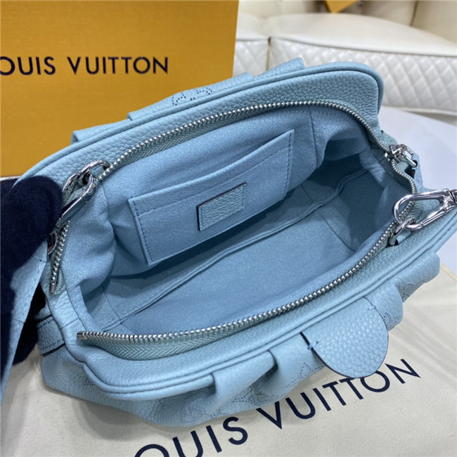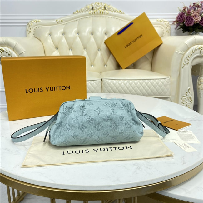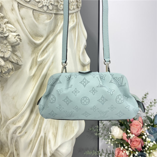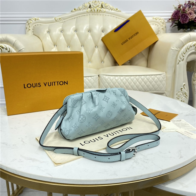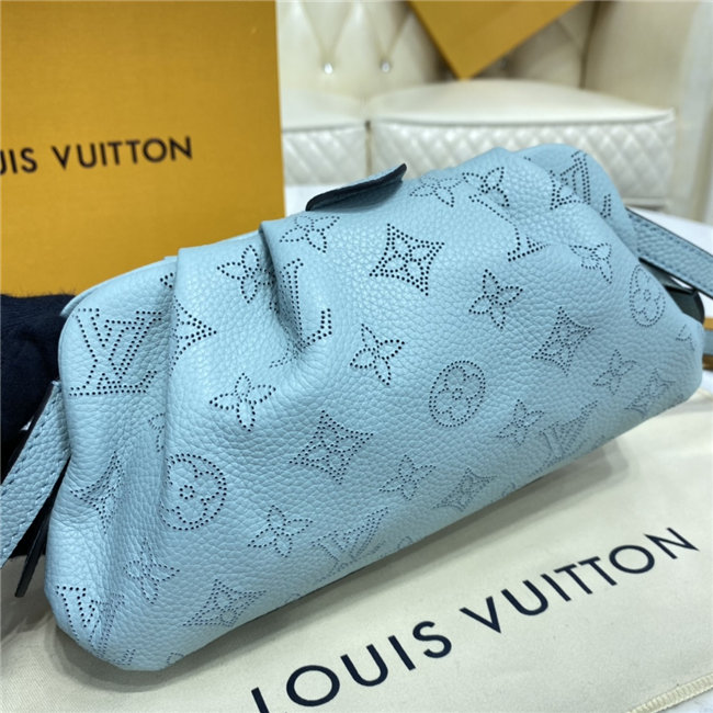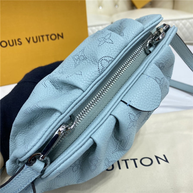 The Scala mini pouch has a soft, body-friendly shape inspired by the folds and pleats of drapery. It is crafted from supple Mahina calf leather, whose delicate perforations replicate Louis Vuitton”s iconic Monogram pattern. Large enough to hold everyday essentials, it has a removable, adjustable strap, enabling it to be carried in several different ways.