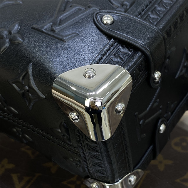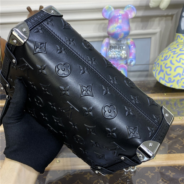 Nicolas Ghesquière twists the iconic Petite Malle into a new body-friendly shape featuring all the codes of the traditional trunk: the Side Trunk PM handbag. Made from Monogram-debossed, calfskin leather, the Side Trunk features a side S-lock and metallic corners. A wide top handle and a thin adjustable strap, both detachable, enable a variety of carries.