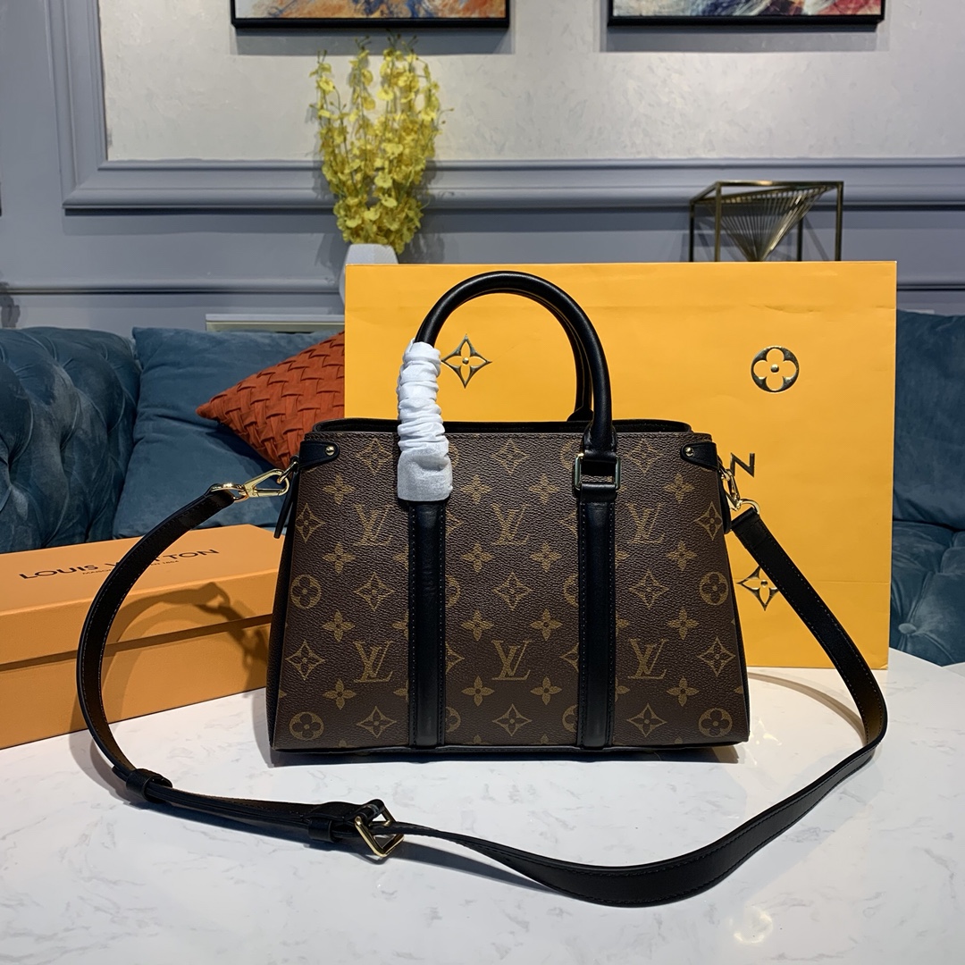 You will receive item exactly as advertised. These pictures belong to our Manufacturer.The fashionably petite Soufflot BB is crafted from supple Monogram canvas, with gussets and trim of rich, colored leather and a coordinating colored lining. With its vertical bands and name tag, it nods to the Keepall, a House icon. Refined and timeless, it can be carried cross-body, on the shoulder, by hand, or in the crook of the arm.