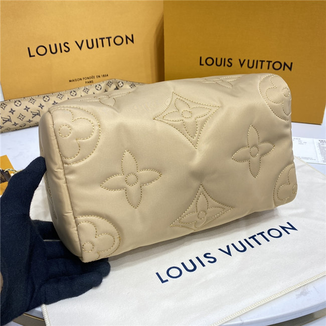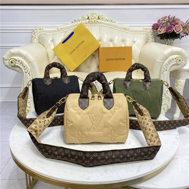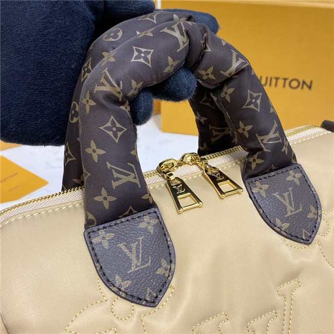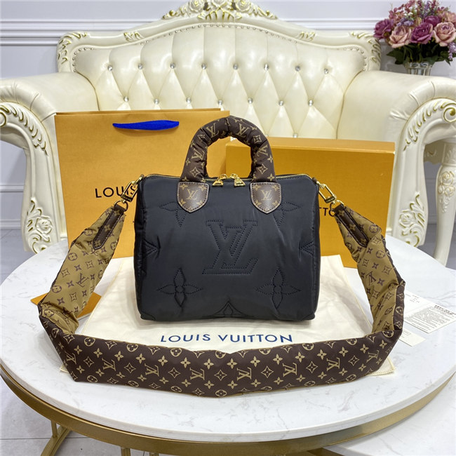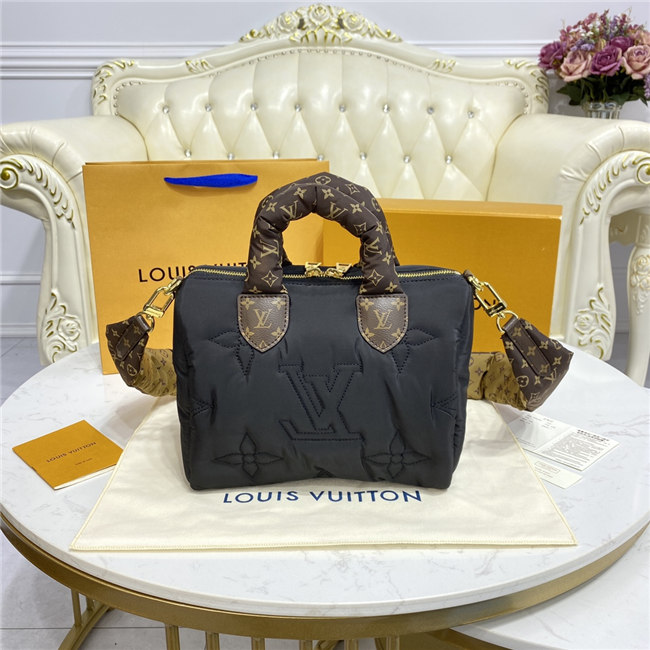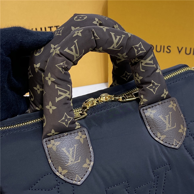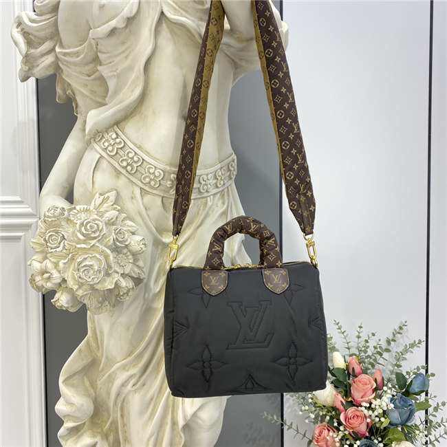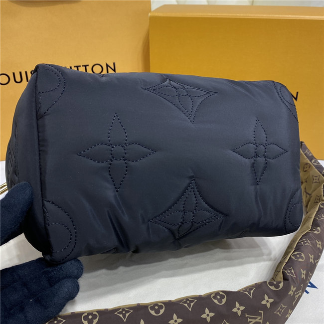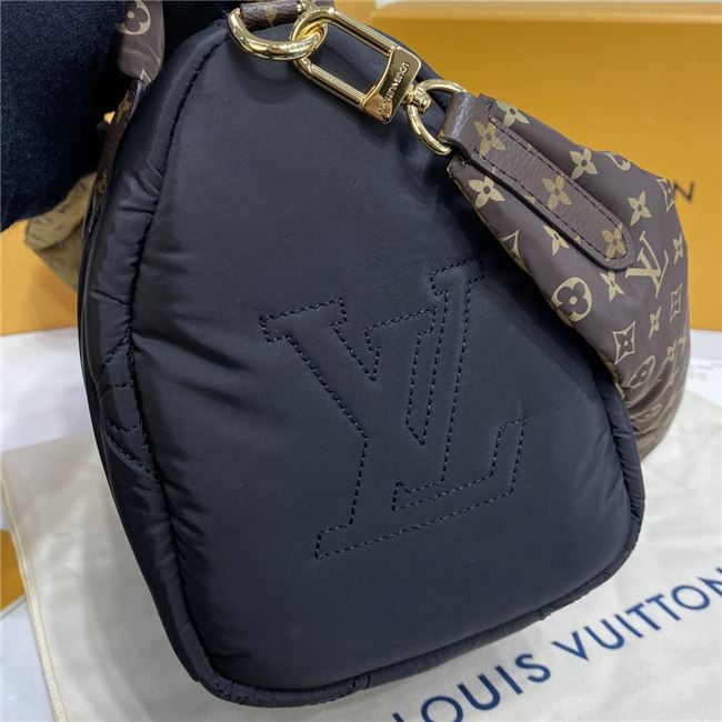 An example of the House’s commitment to eco-responsible craftsmanship, this Speedy Bandoulière 25 handbag is made from Econyl regenerated nylon, with an embroidered Monogram pattern. Its padded exterior makes it the perfect comfy accessory for winter. Every detail of the Speedy’s design is iconic, from its silhouette to the leather top handles and removable strap.