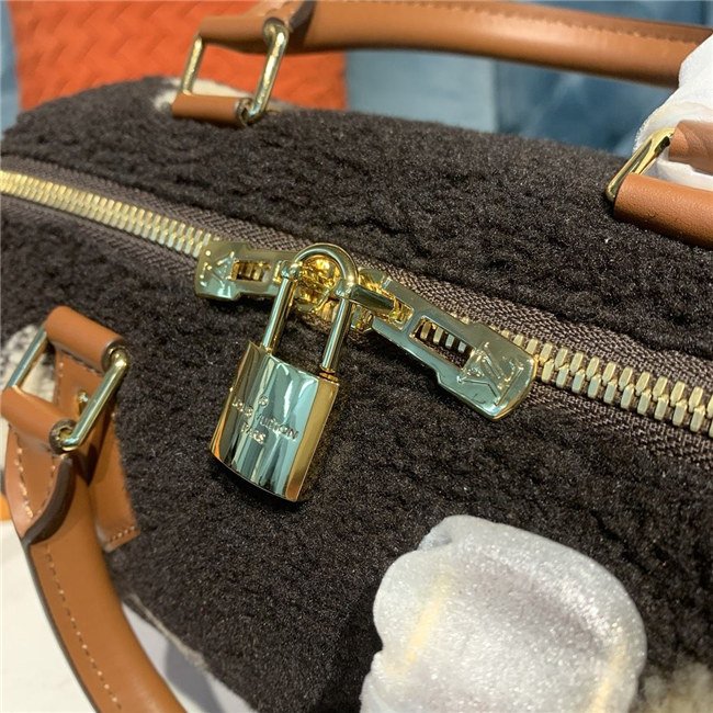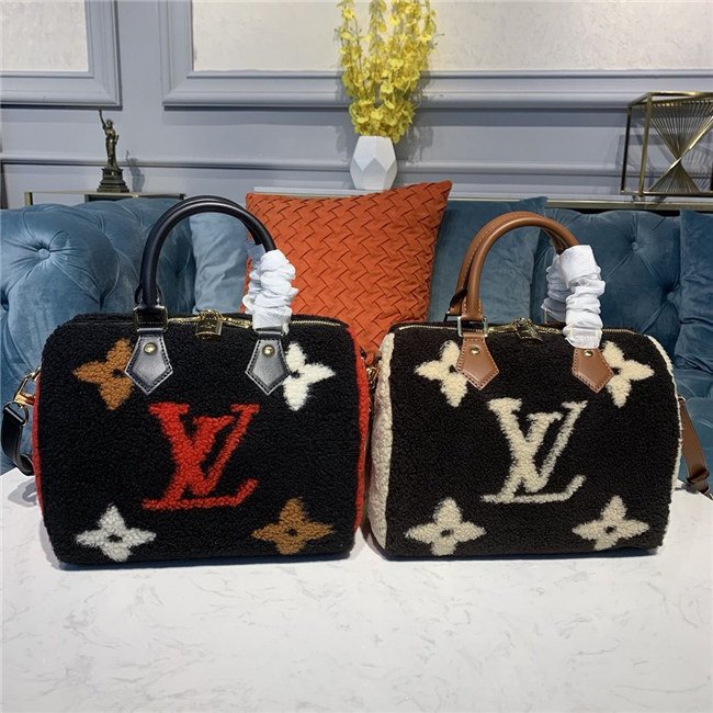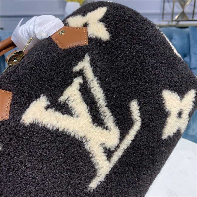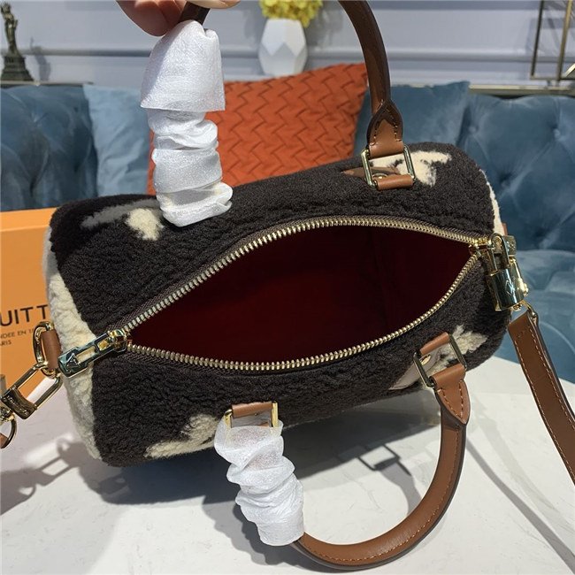 Louis Vuitton””s iconic Speedy Bandoulière 25 handbag is given a chic new twist for the Monogram LV Teddy limited edition. In a demonstration of the House””s leather-goods craftsmanship, an elaborate intarsia technique is used to create a giant Monogram pattern in luxurious shearling. The result is an irresistibly fluffy look and super-soft feel.