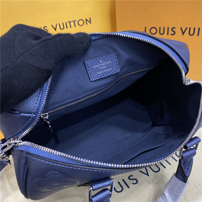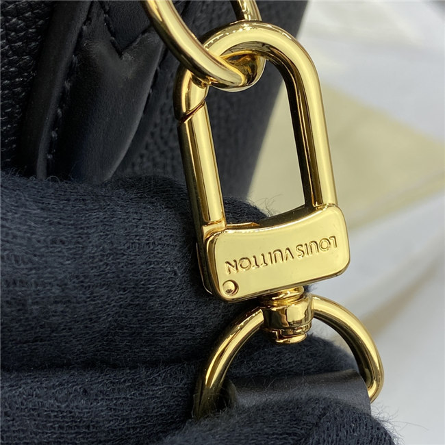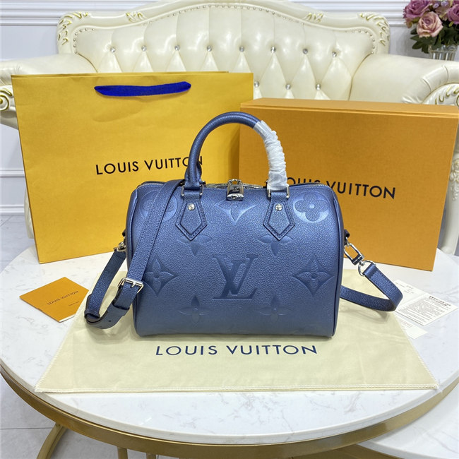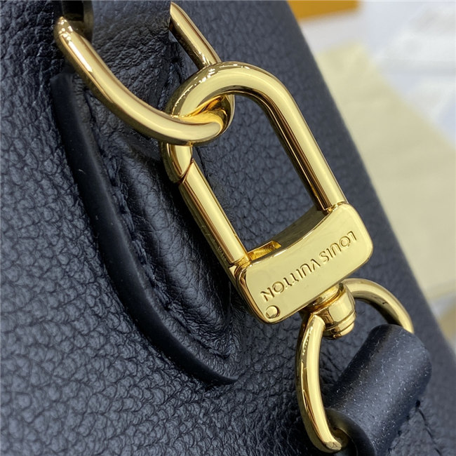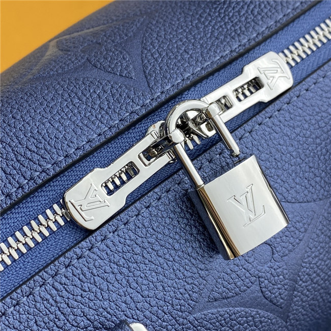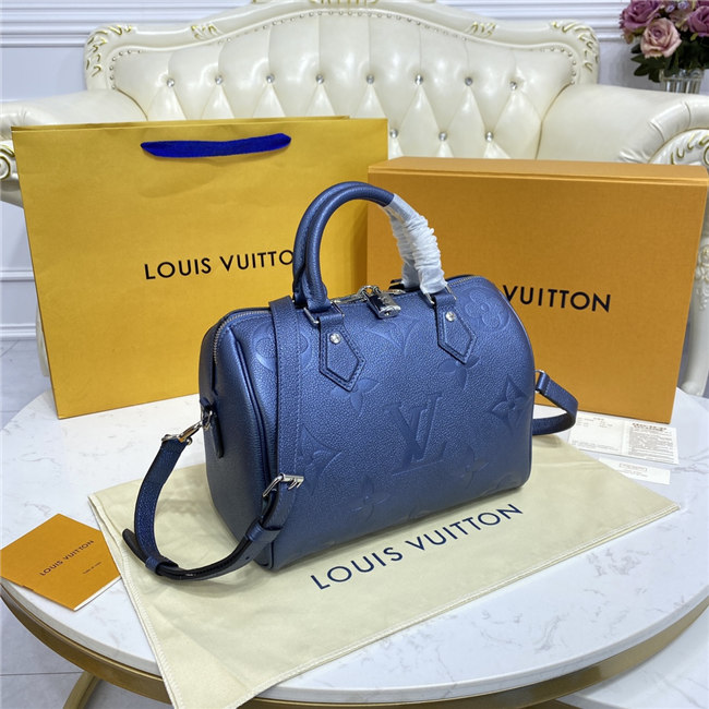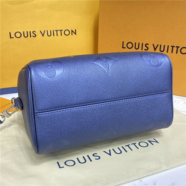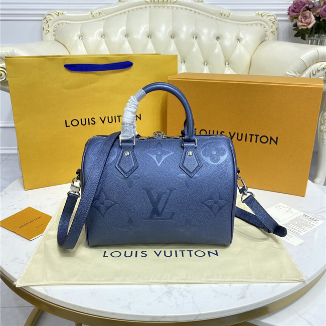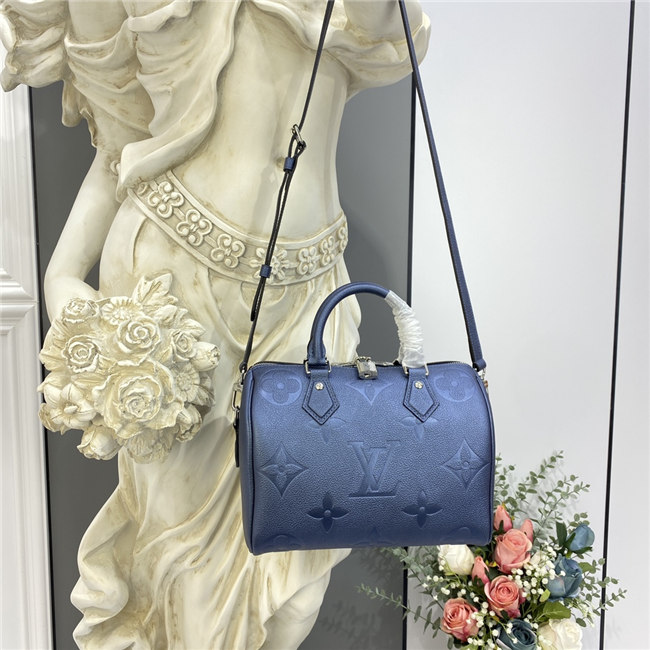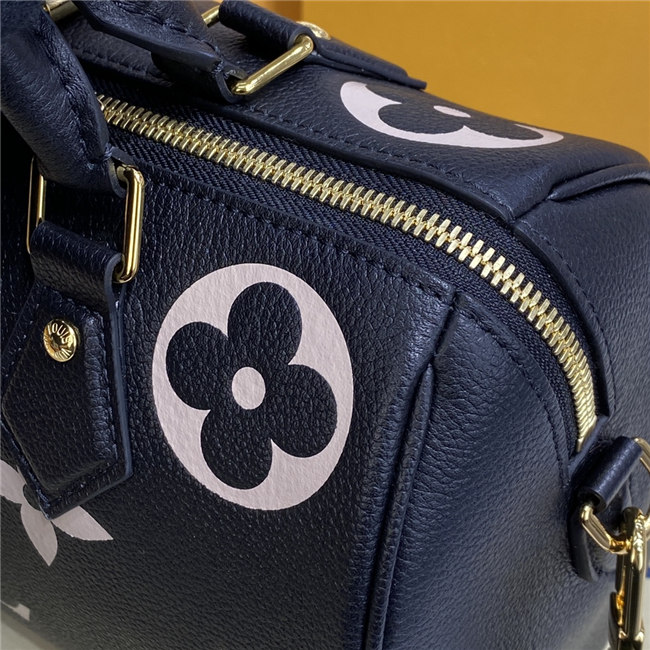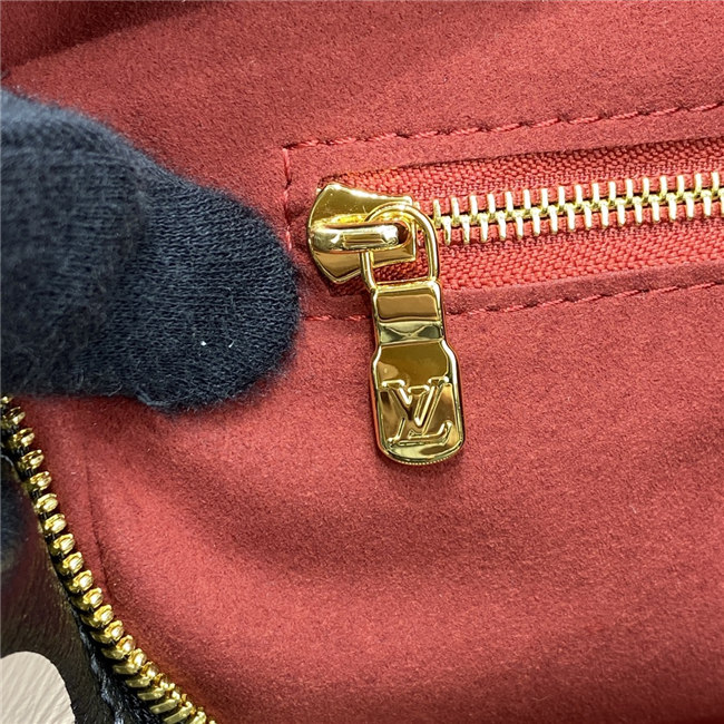 The compact Speedy Bandoulière 25 handbag is made from black Monogram Empreinte leather with the embossed Oversized Monogram pattern in beige. This sophisticated handbag was inspired by the House’s “Express” bag from 1930. Finished with gold-color hardware, the interior is lined in red. A detachable and adjustable shoulder strap, in addition to the top handles, enables carry options.