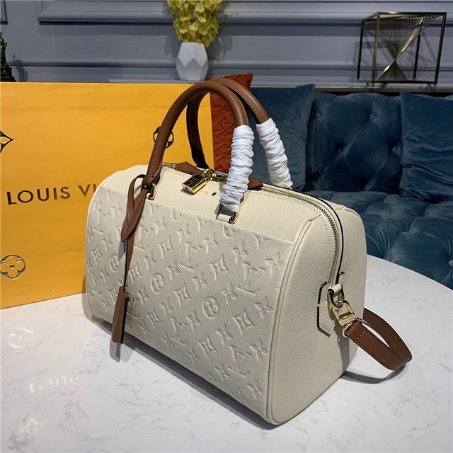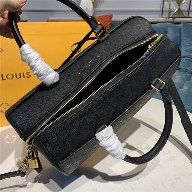 Louis Vuitton speedy monogram empreinte leather handbag, The Speedy Bandoulière 30 handbag in Monogram Empreinte leather is a sophisticated city bag to carry every day. Originally created for travelers in the 1930s – the name refers to the era’s rapid transit – every feature of the Speedy’s signature design is iconic, from its unmistakable silhouette to the rolled leather handles, engraved padlock and detachable strap.